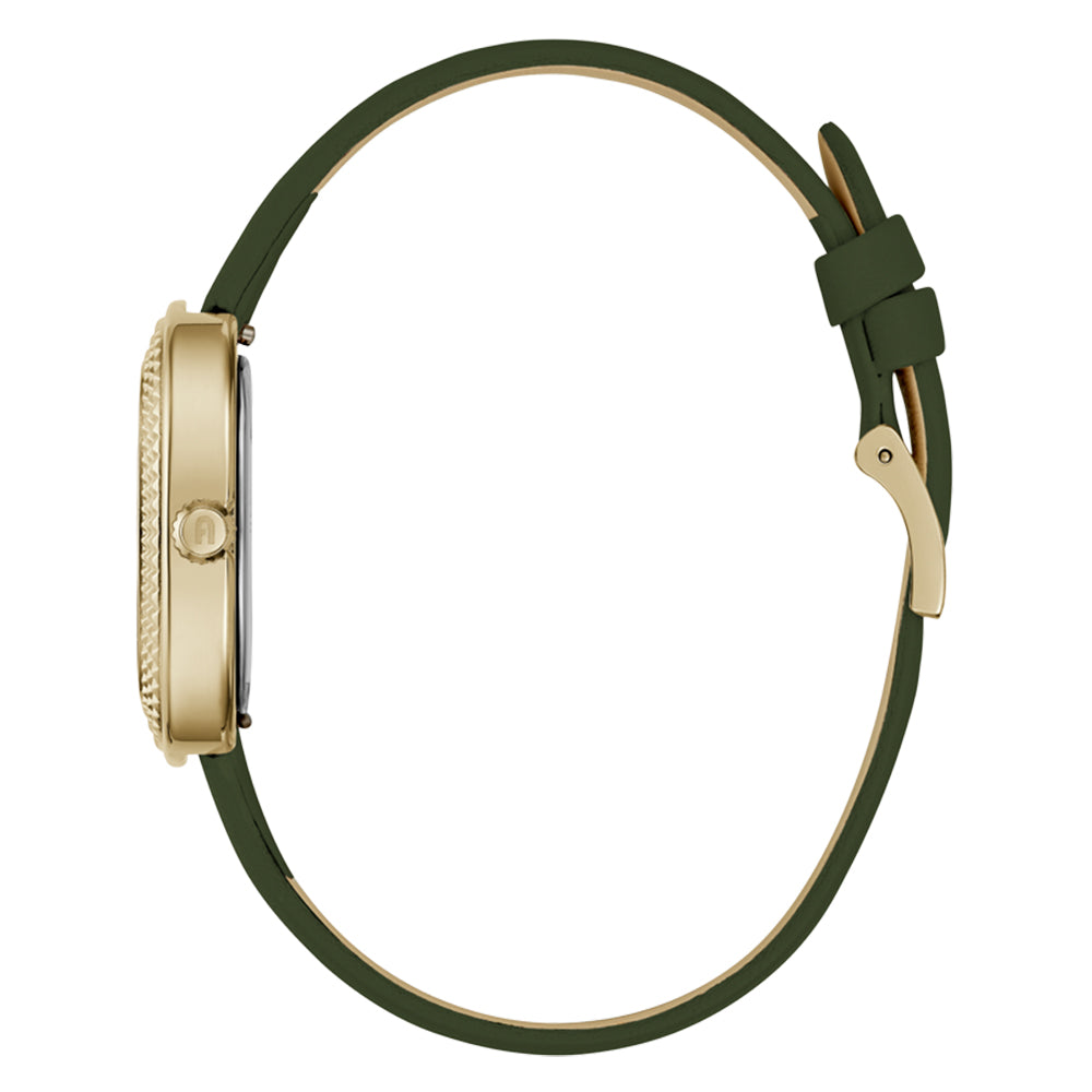 Indulge in the allure of this champagne tone on your wrist with this Furla timepiece. The color radiates sophistication, while the intricate strap buckle adds a touch of functional elegance. It's more than a watch ? it's a statement of refined style and meticulous craftsmanship