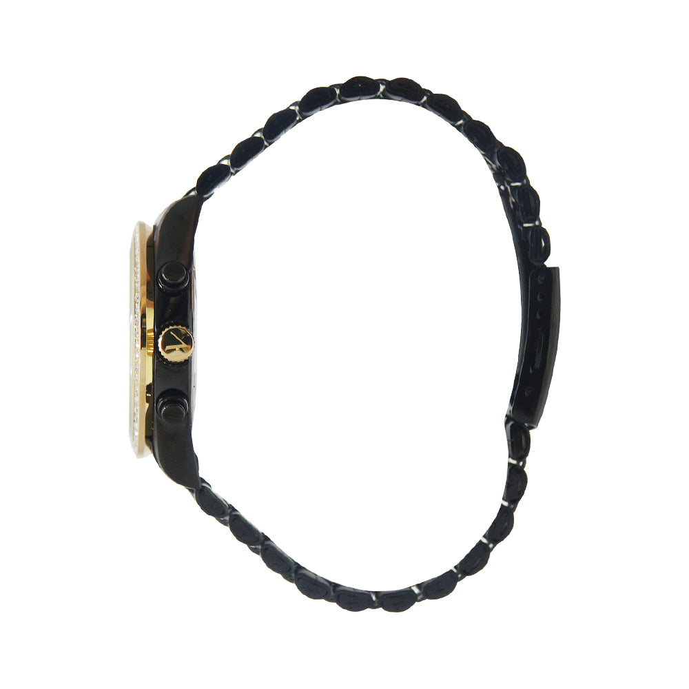 With its radiant gold face and sleek black band, this watch commands attention with its refined yet daring design. The intricate bezel work enhances its luxurious appeal, making it an ideal accessory for those who appreciate both style and substance.