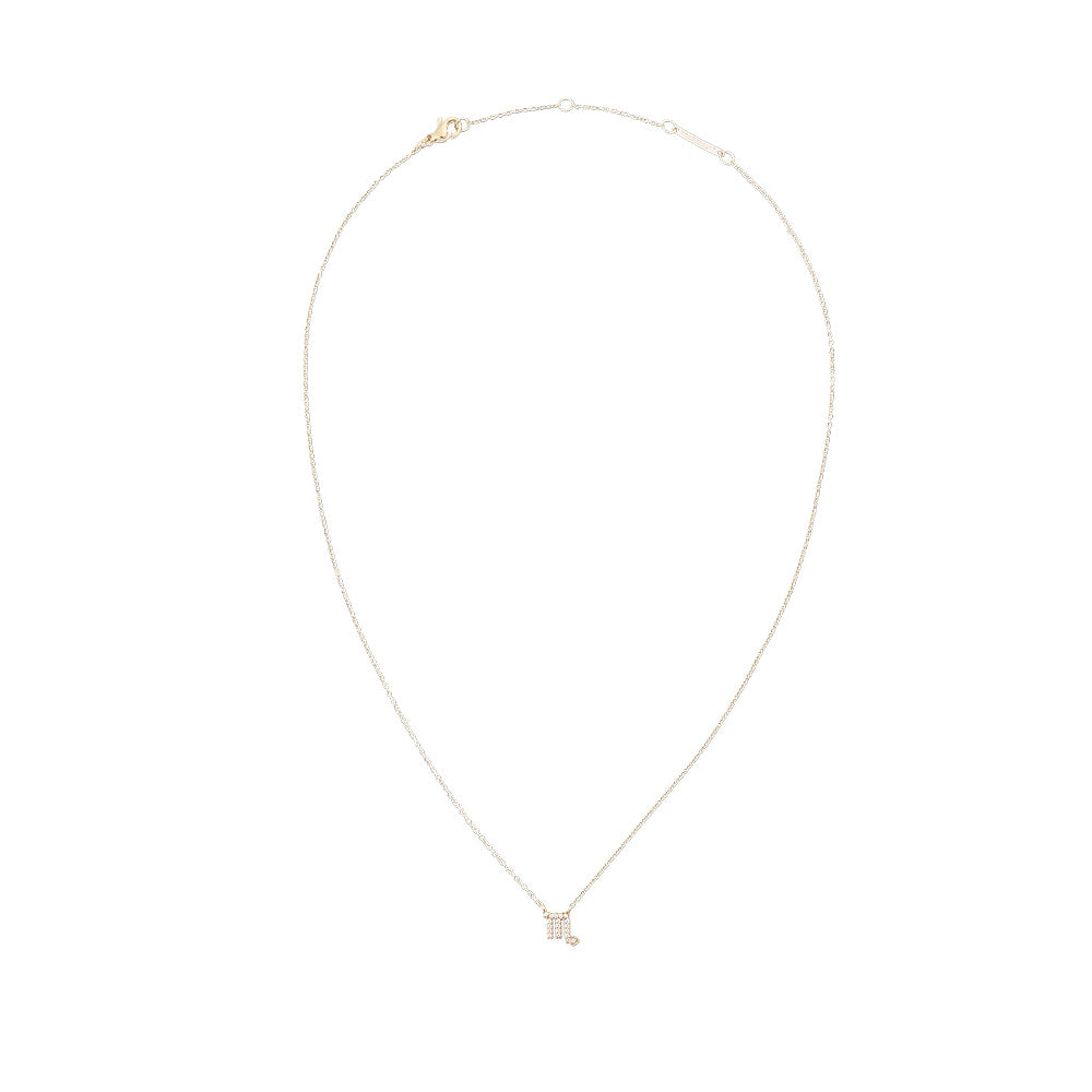 Take this as a sign from the stars: it’s time to add some celestial energy to your look. This gold necklace features a thin, elegant chain with a fixed crystal zodiac pendant. Every crystal on the pendant is hand-set using a claw setting technique, and the chain comes equipped with sizing rings for an adjustable length.