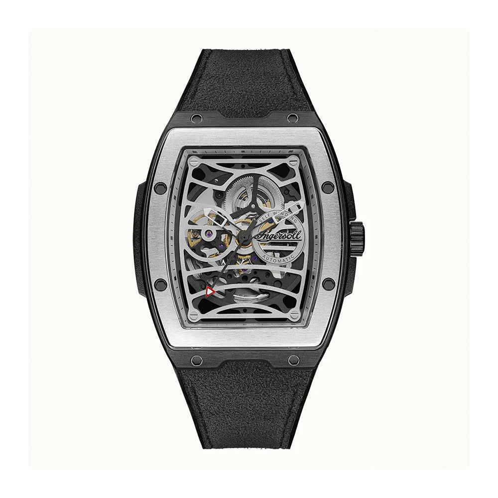 A practical yet impressive design, the Ingersoll Challenger Mens Watch INI12306 maintains a quality finish without compromising on style. Boasting a black rubber strap and pin buckle fastening, this unique timepiece is complete with an exposed skeleton dial and two-tone black and silver stainless steel case in a contemporary rectangular form. A high impact watch for everyday wear.