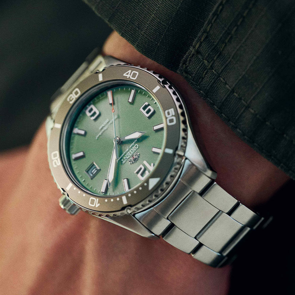 This model features a sporty diver style with a compact 39.9 mm case and simple design. Additionally, it is powered by a convenient solar-powered movement and come in colours evoking the gentle sunshine.