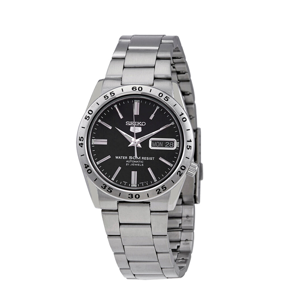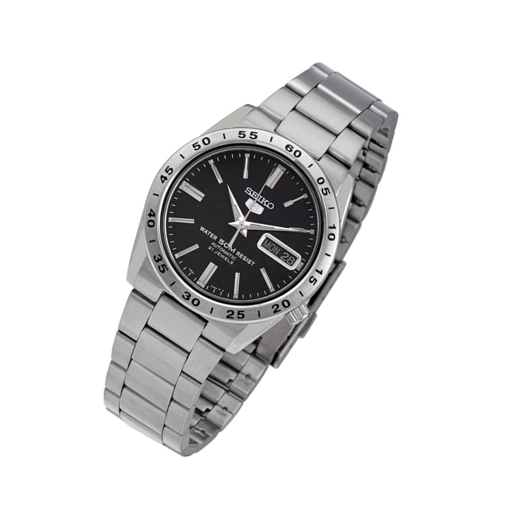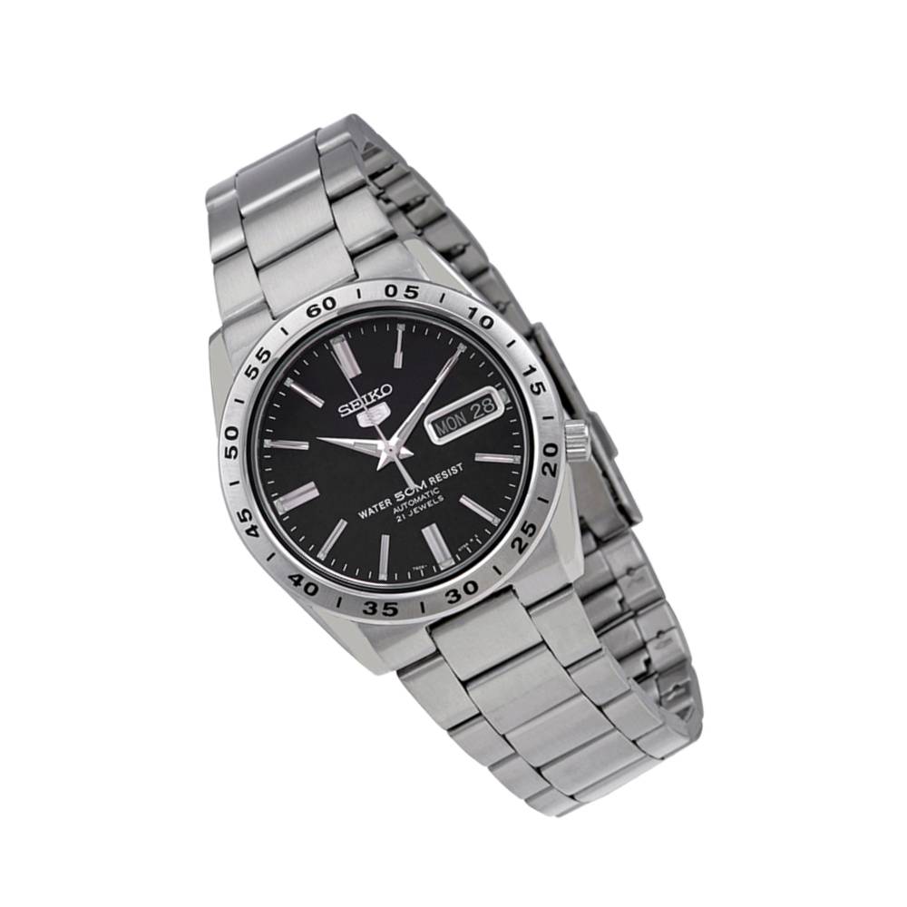 Crafted in stainless steel, this automatic timepiece runs on the reliable 7S26 caliber with 21 jewels. It features a bold black dial, luminous hands, day-date display, and a see-through case back. With 50M water resistance and classic dimensions (37mm case, 12mm thickness), it’s built for effortless style and function.
