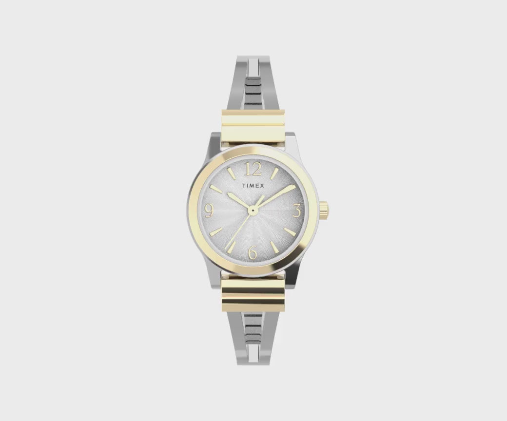 Design meets comfort with our Main Street collection. We?ve paired the look of a stylish timepiece with its understated 25mm two-tone case and textured silver dial with the convenience of a two-tone expansion band, creating the perfect accessory for any outfit.