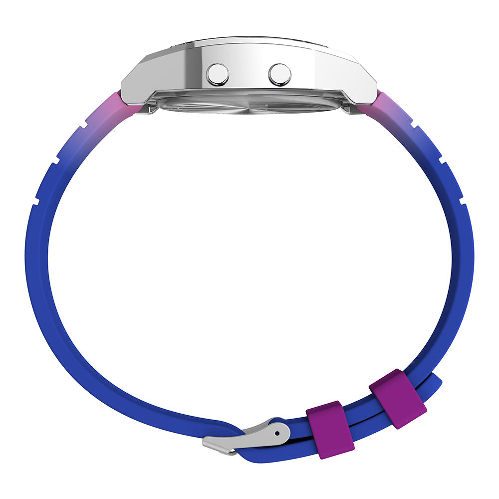Color has the power to directly influence our mood, and our T80's latest iteration brings punchy hues that spark optimism and joy. Like the original, this watch packs a date display, stopwatch, INDIGLO® backlight, 30m water resistant rating, and alarm, but it serves a new look with a sleeker, more modernized, stainless-steel case. Rock it on a flexible resin strap in a hyper-bright gradient or keep it classic with a gold-tone or silver-tone stainless-steel bracelet. Its vibrant design brings a positive energy to your fit no matter how you style it.