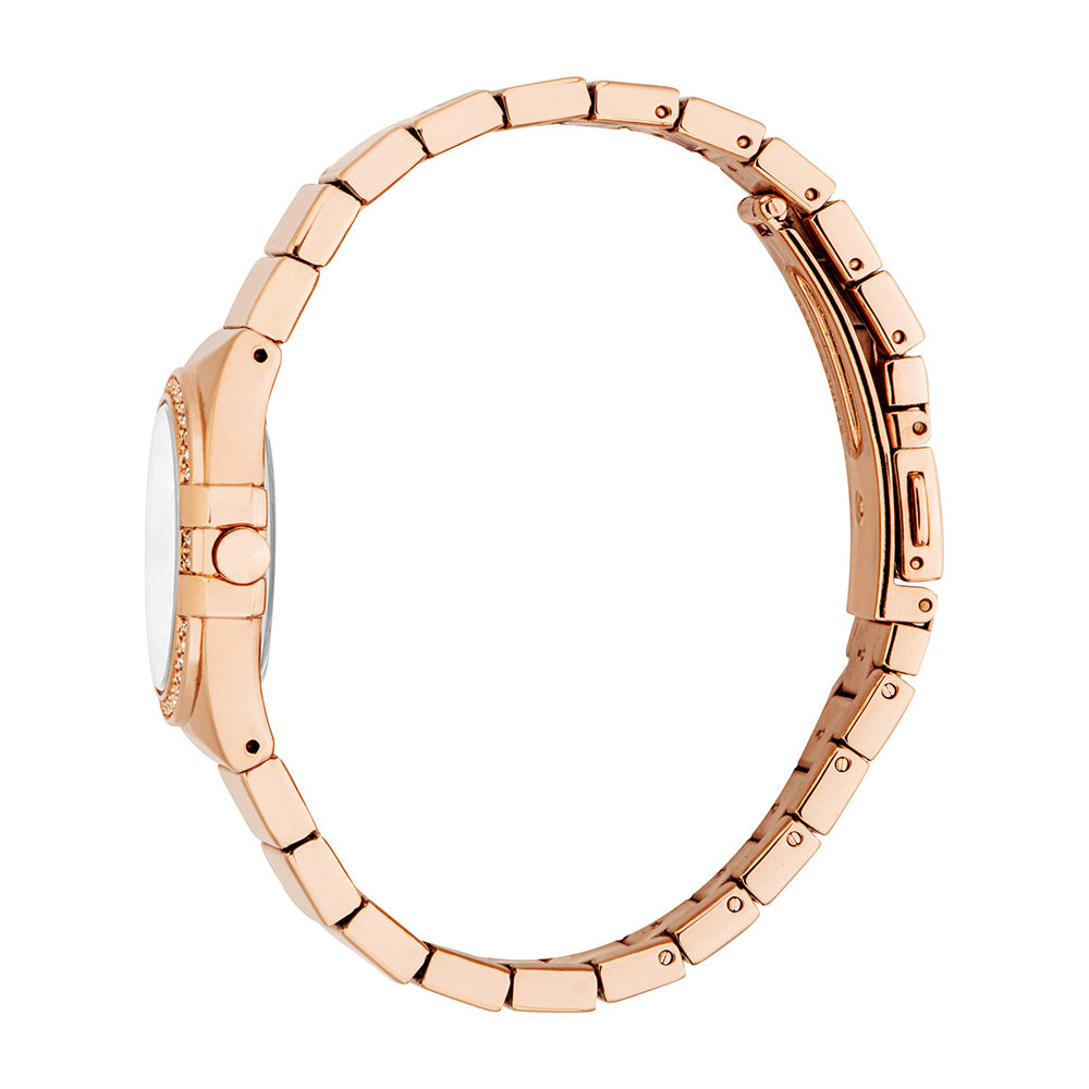 Make every moment shine with this luxurious rose gold watch, showcasing a sleek dial and crystal-encrusted bezel. It’s a glamorous accessory that adds a refined touch to any outfit, perfect for making a lasting impression.