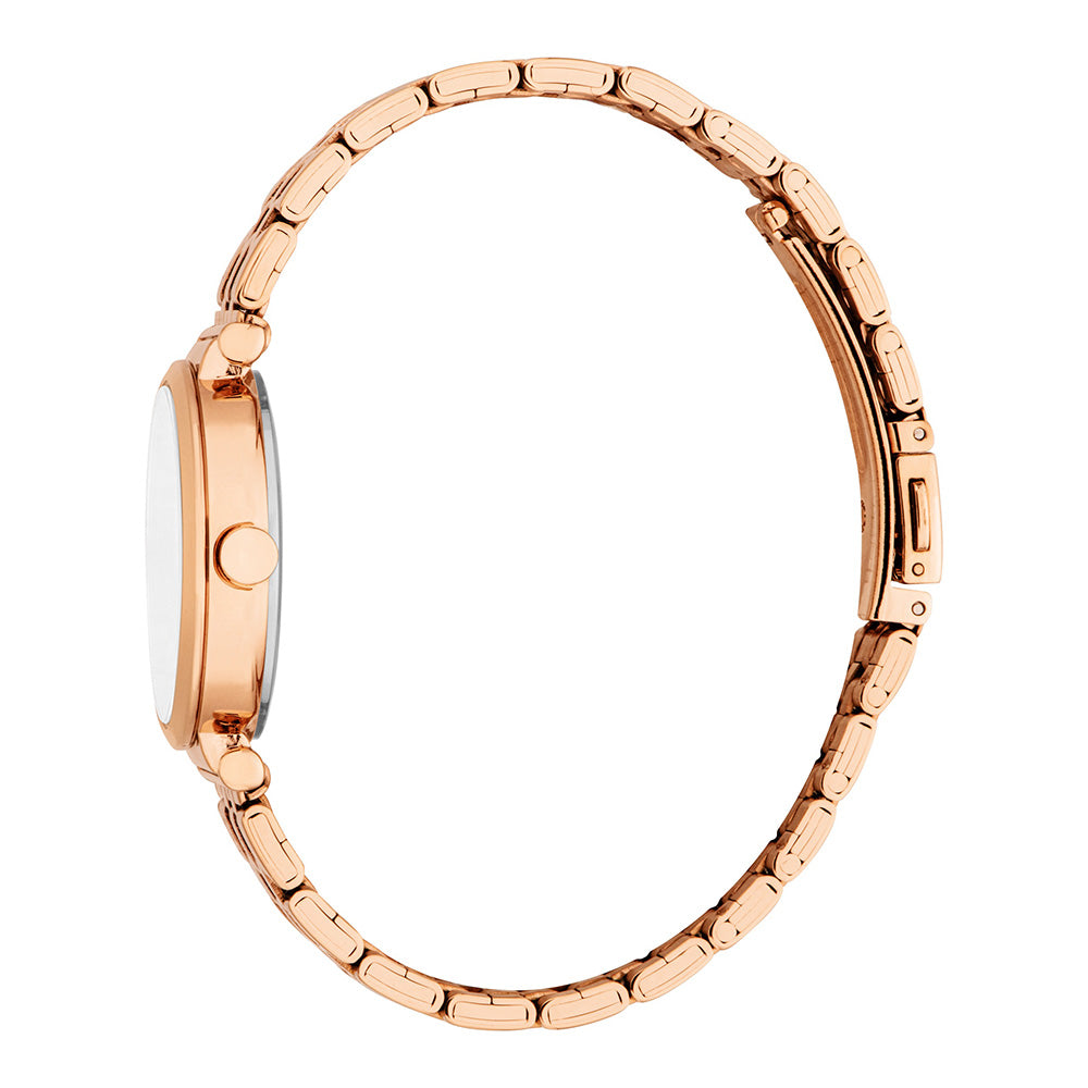 Why blend in when you can stand out? This rose gold watch is all about that wow factor, with its eye-catching silver dial and glittering crystal markers. It’s perfect for the woman who loves a little extra sparkle in her life.