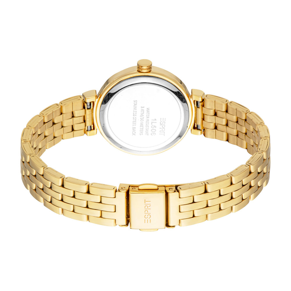 Light dances across the face of this Esprit watch, with its mother-of-pearl dial and gleaming gold bracelet. A timeless accessory that embodies beauty and grace.