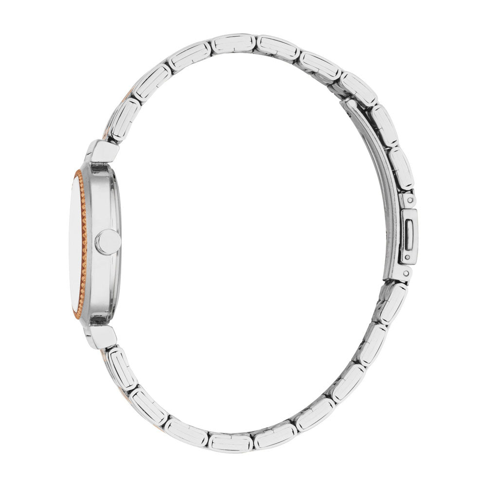 A modern masterpiece, this Esprit watch seamlessly combines sleek silver tones with warm rose gold accents. The crystal-adorned dial adds a touch of brilliance, making it a timeless treasure.