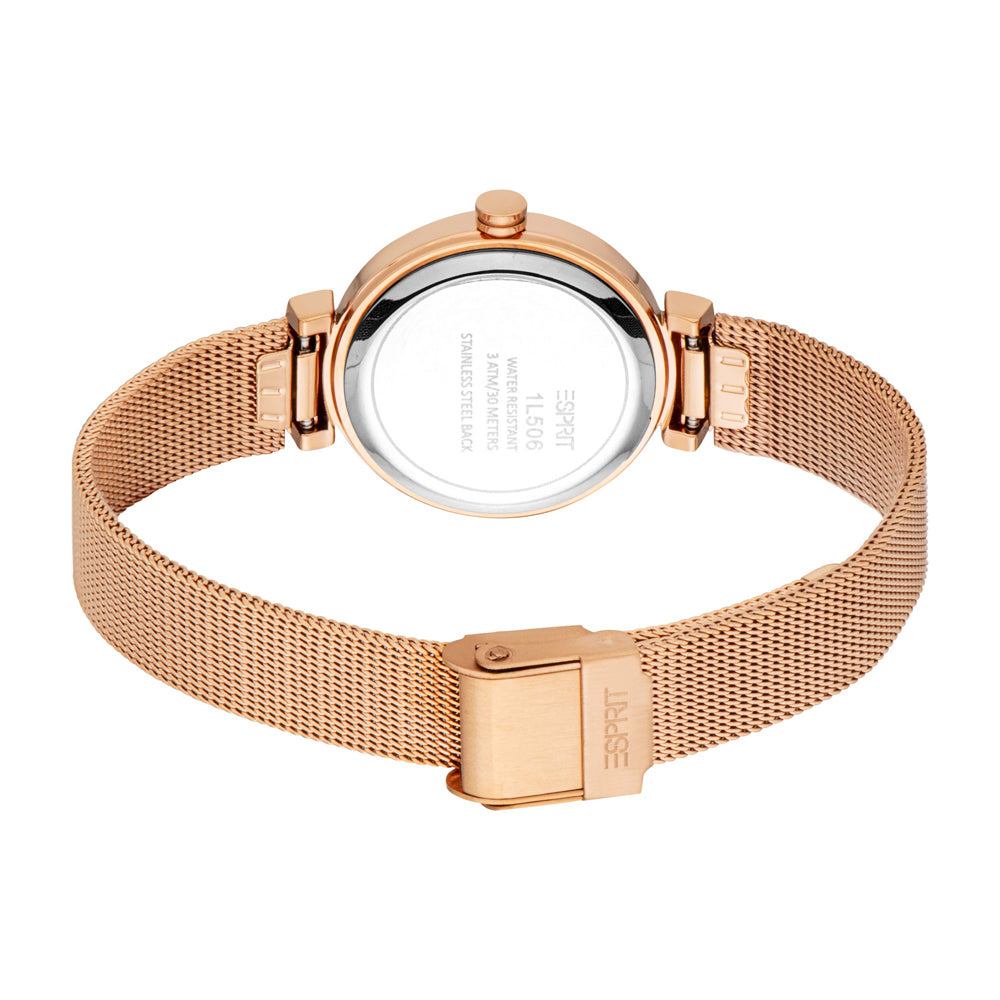 Drape your wrist in elegance with this Esprit watch. Its rose gold tones and radiant dial exude warmth and sophistication, making it a must-have accessory.