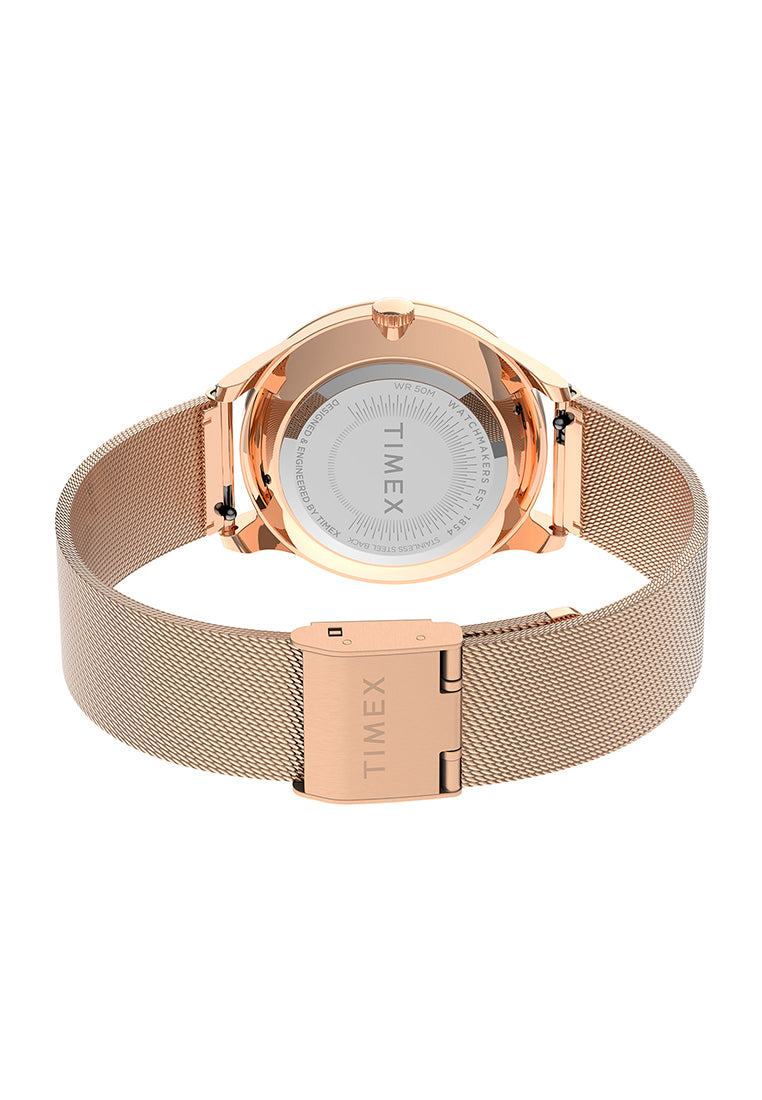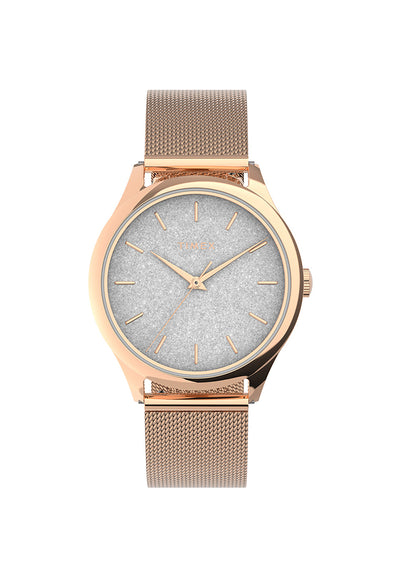 Inspired by the beauty of the star-scattered night sky, the unique details of our Celestial Opulence watch stand out on your wrist. Featuring our INDIGLO® backlight, the glittering white dial is complemented by a rose gold-tone stainless-steel mesh bracelet and a polished rose gold-tone case for a brilliant, eye-catching shine.
