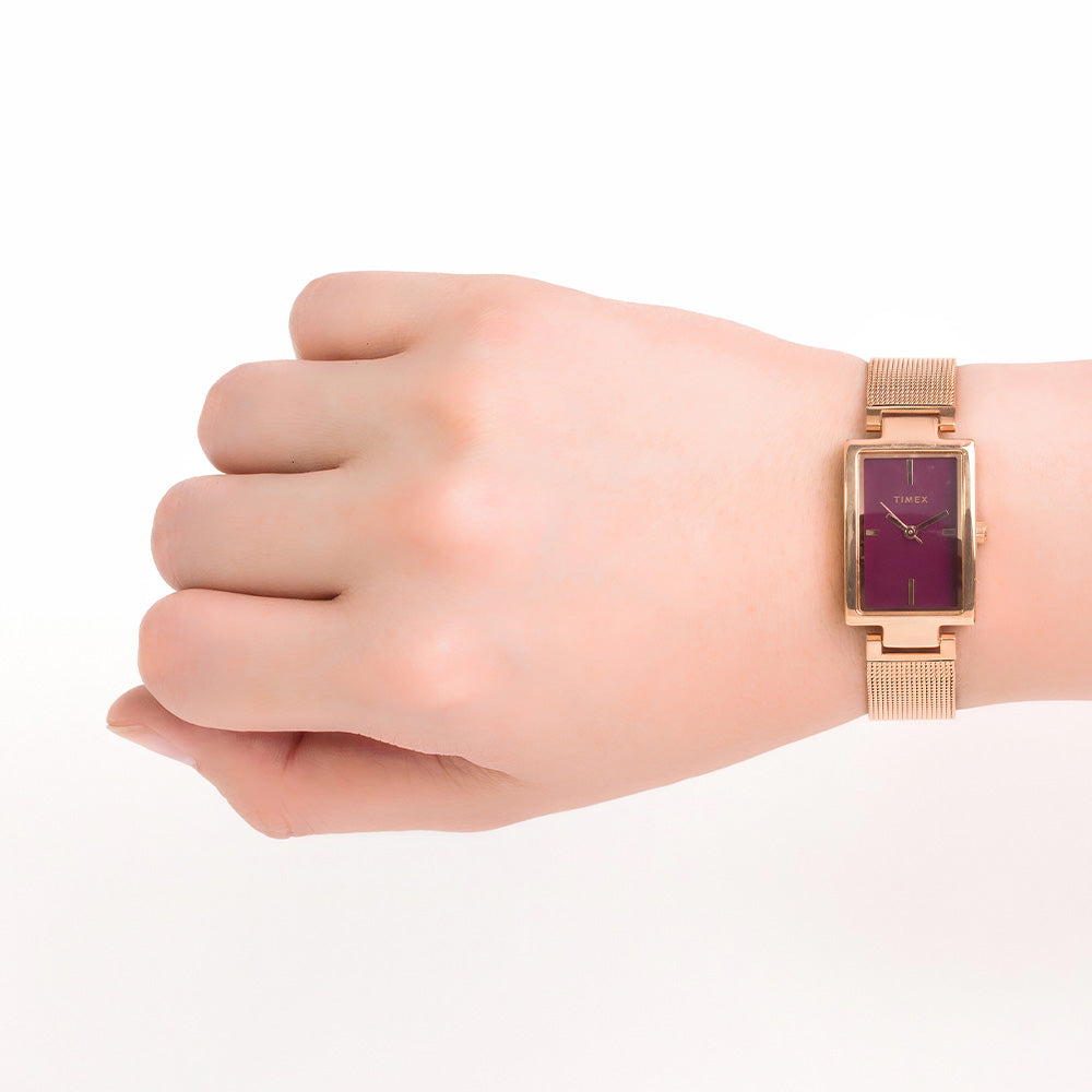 Combining good looks with functionality, this square watch exemplifies modern sophistication and the mesh band adds a new level of appeal to an already classic look.