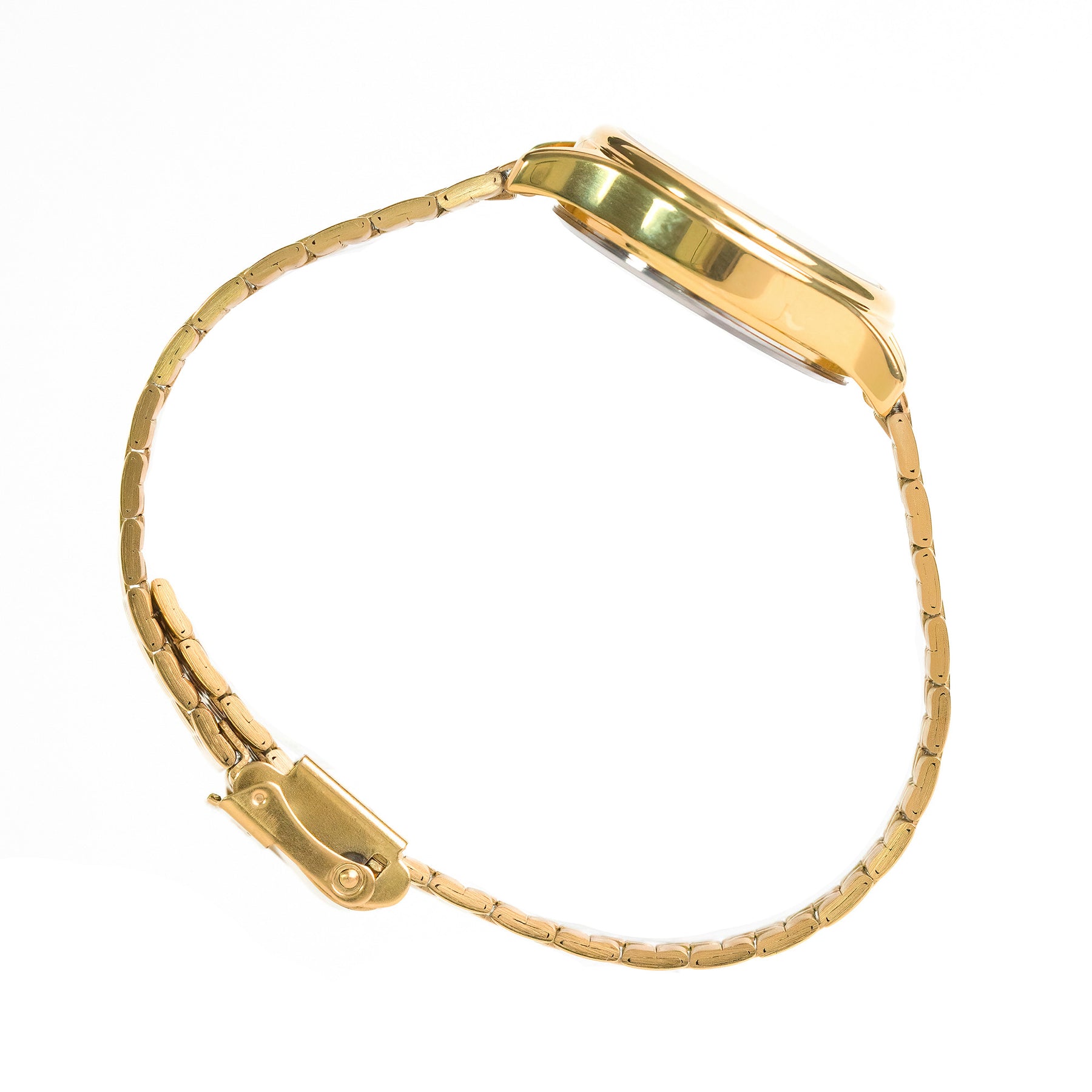 This classic analog watch for ladies features yellow gold accent case and stainless steel bracelet. the minimalist and sleek design of the yellow gold dial provides a clear display of the time to make telling the time easier than ever before. over-all, the stunning gold accents creates a perfect balance of elegance and simplicity, that will help exude confidence to every woman wearing it.