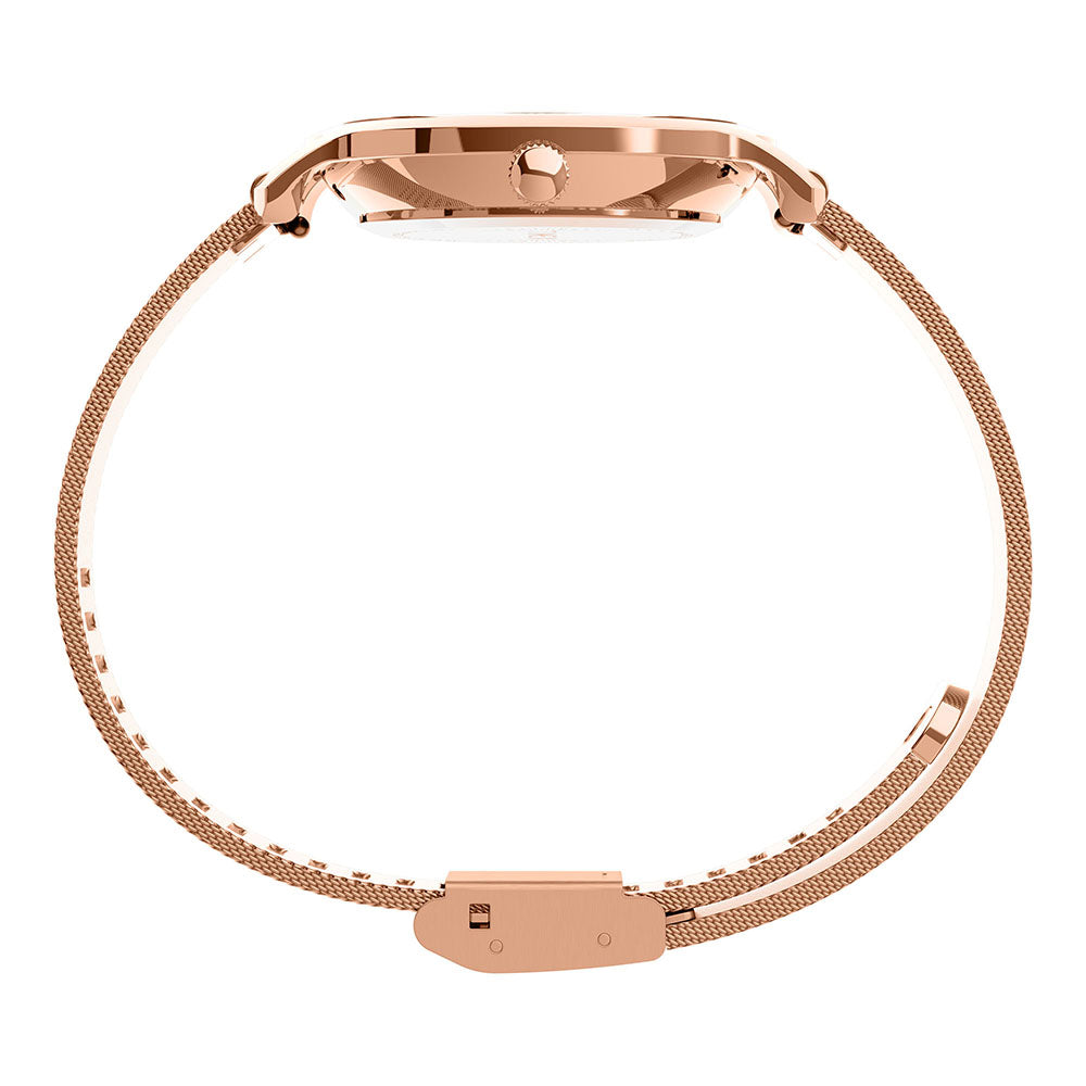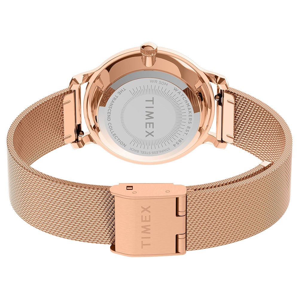We've paired our timeless Transcend? with a coordinating bracelet to create a beautiful and thoughtful gift set they'll love to wear. With an elegant dial, a polished rose gold-tone case design, and a coordinating stainless-steel mesh band, our slim Transcend? watch offers a touch of sophistication to any look. Dimensional dial markers attract just the right amount of attention to the white dial, rendering a well-rounded watch that otherwise speaks to understated style and class. Add some sparkle by pairing it with the matching stainless-steel bracelet or wear it alone; it looks great either way.