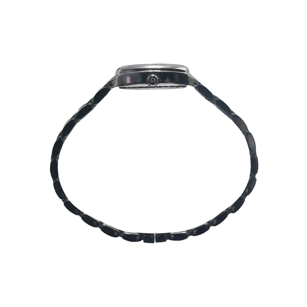 Clean lines and confident structure define this Aina rectangular stainless steel watch. Its crisp white dial, framed by a distinct geometric case, offers a modern alternative to traditional round silhouettes. Minimalist hour markers and a balanced date window keep the design sharp and purposeful, while the polished metal bracelet adds a refined, urban finish.