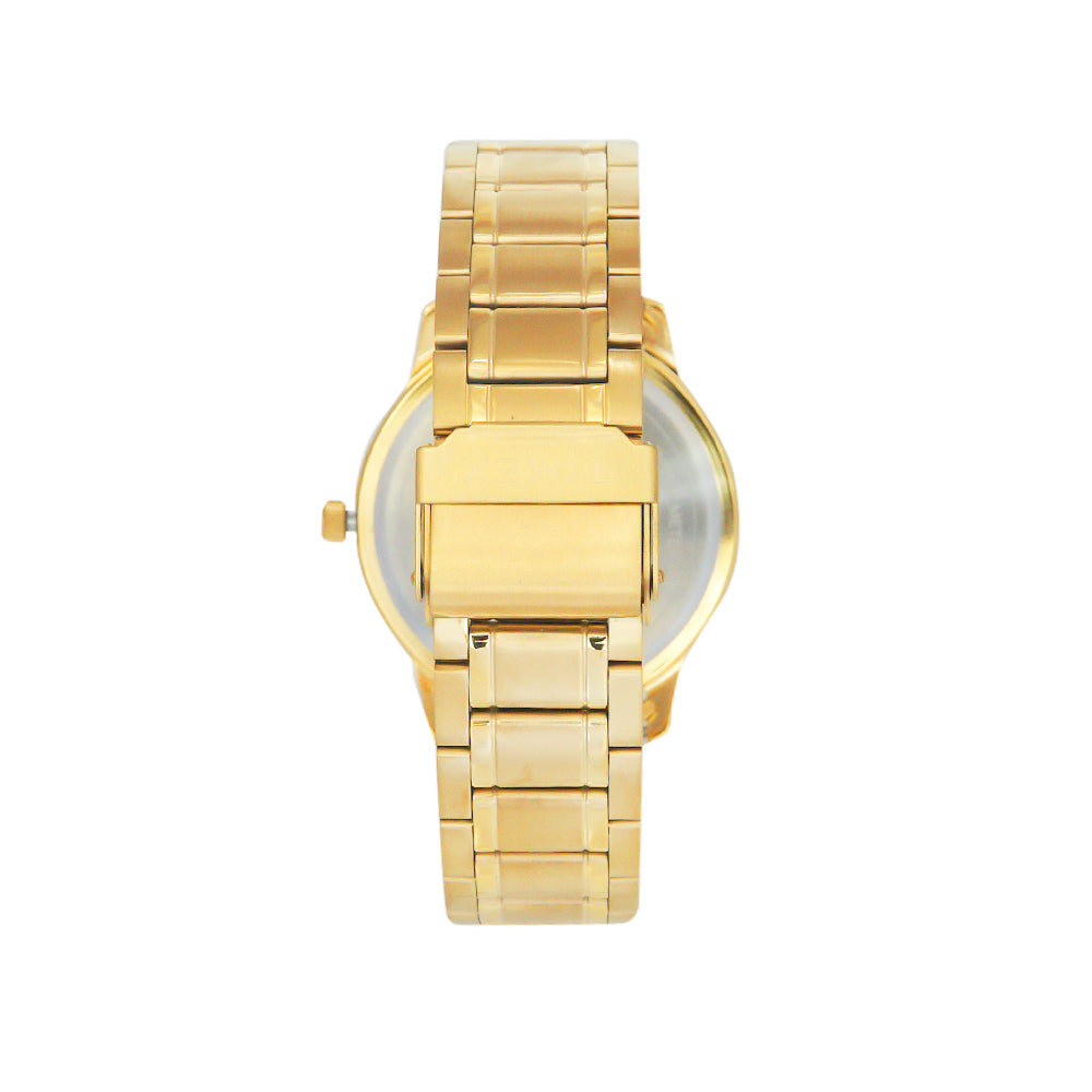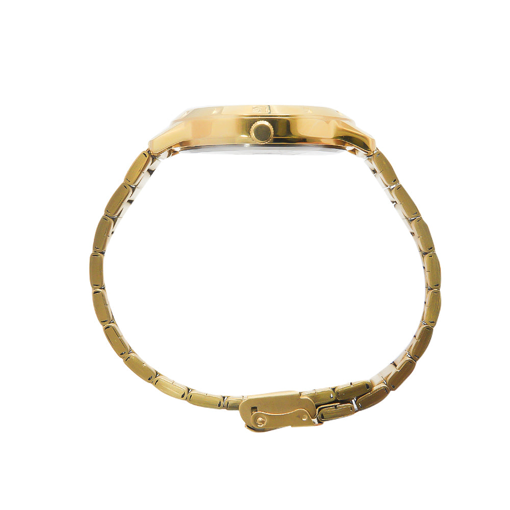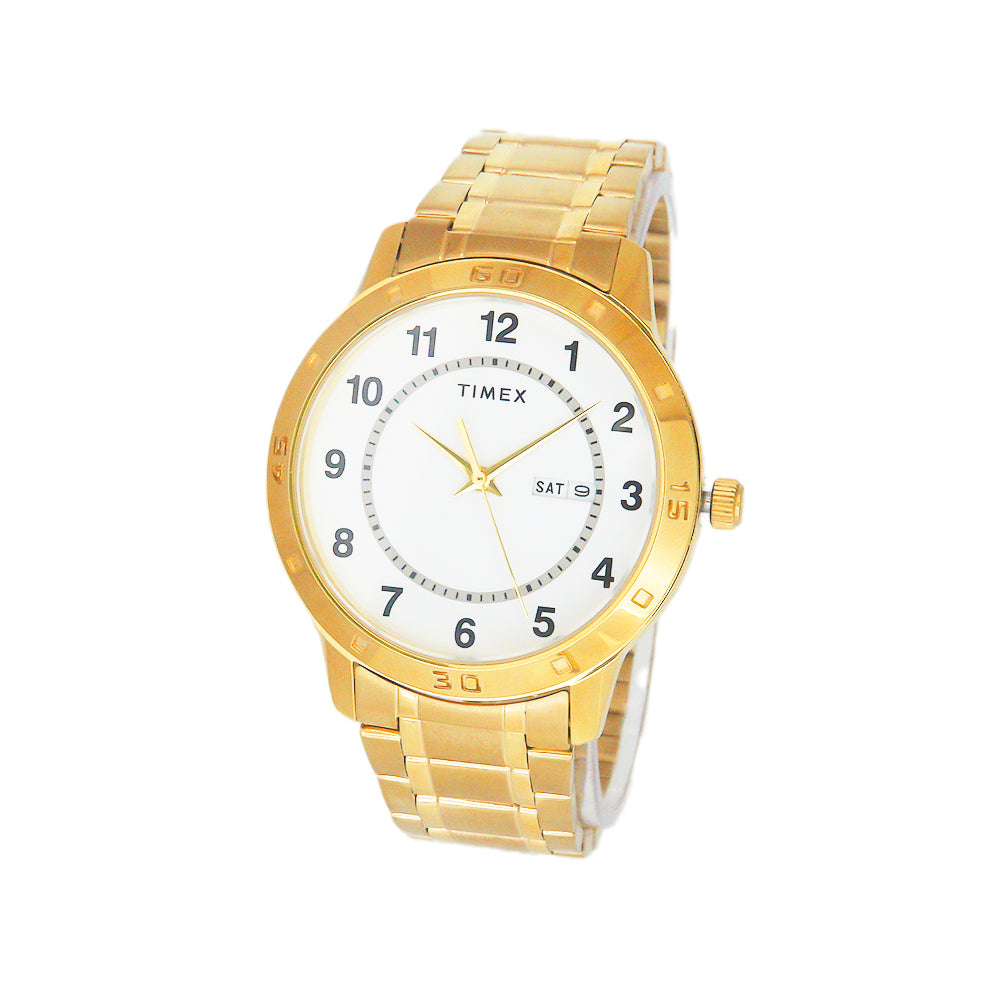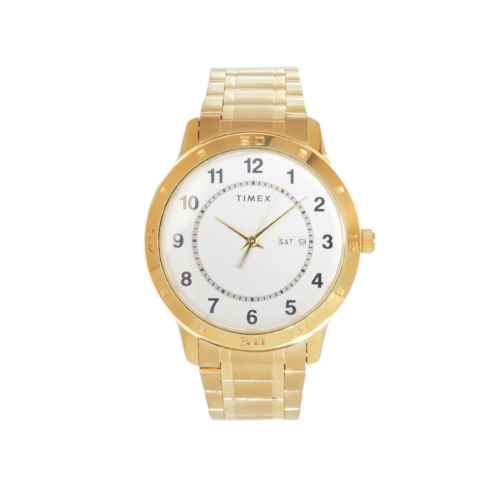 Combining rugged appeal with timeless design, this 40mm Timex boasts a gold-tone case and bracelet, and a minimalist white dial with three hands. The day and date indicator offers added convenience, perfect for an active, on-the-go lifestyle."