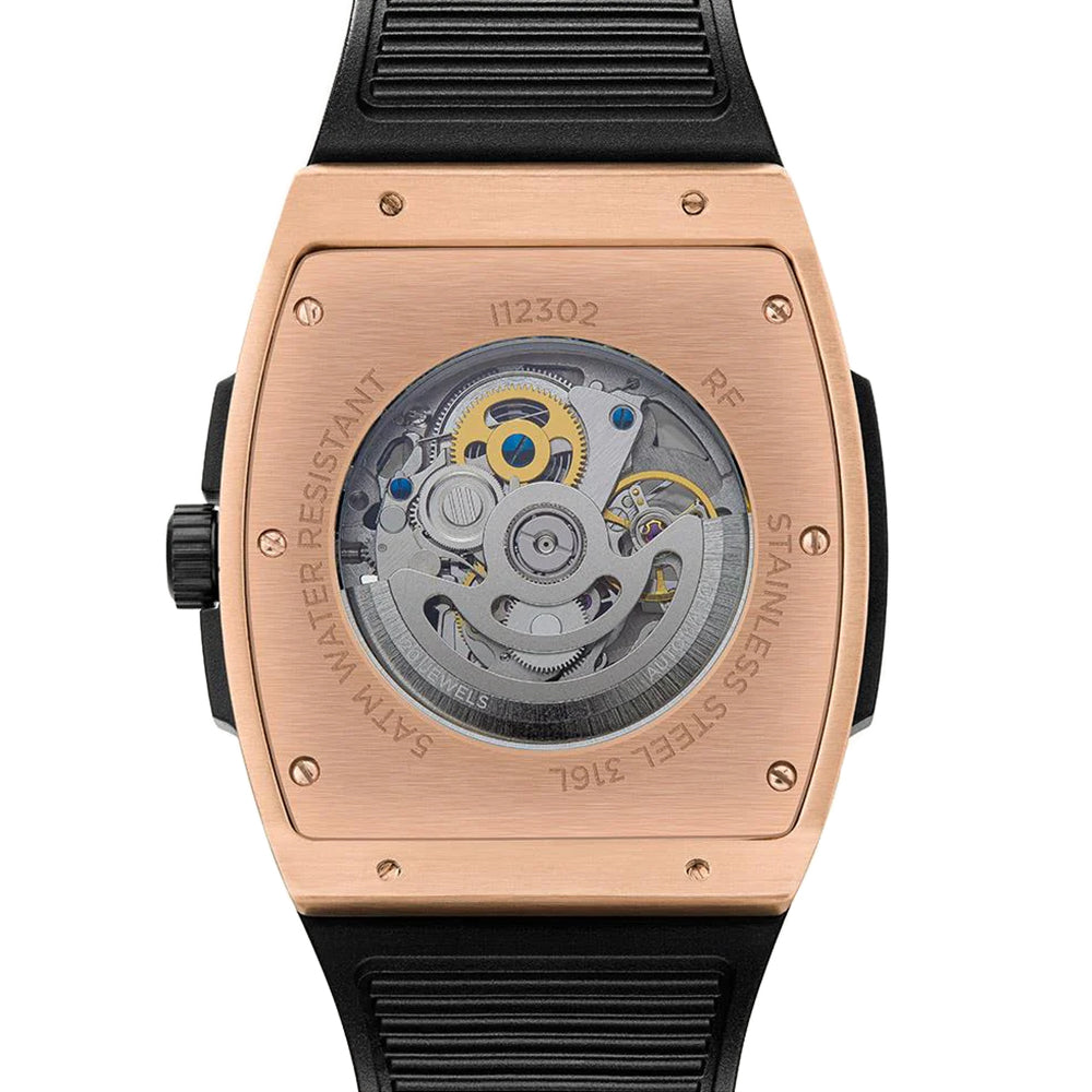 A practical yet impressive design, The Challenger maintains a quality finish without compromising on style. Boasting a black rubber strap and pin buckle fastening, this unique timepiece is complete with an exposed skeleton dial and two-tone black and silver stainless steel case in a contemporary rectangular form. A high impact watch for everyday wear.