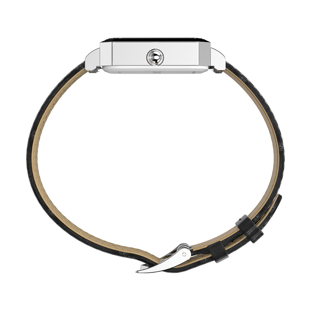 With a petite 21mm rectangle case and polished finishes that catch the light just right, this women’s dress watch makes an elegant statement on the wrist. The dial features a beautiful mix of textures at the center and along the edges, with metallic Roman numeral hour markers that match the case tone. Paired witha crocodile-textured natural leather strap, it’s a versatile timepiece that brings sophistication to any look.
