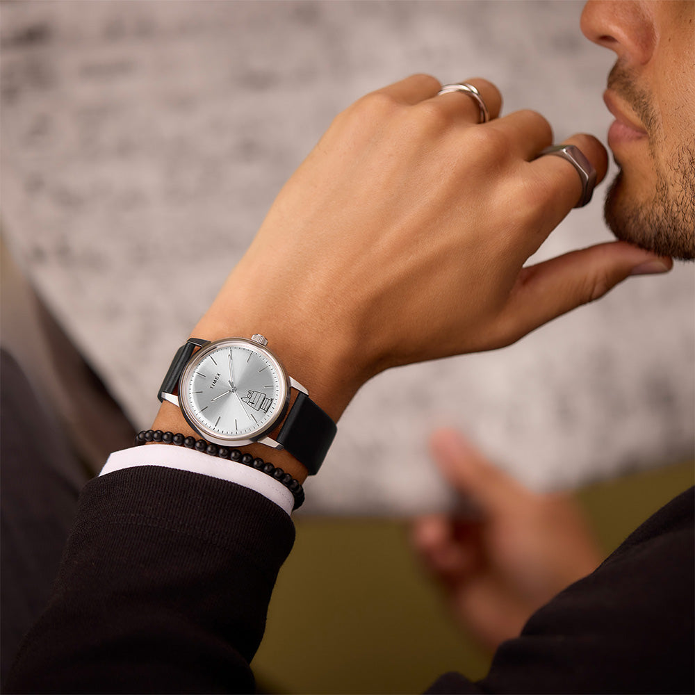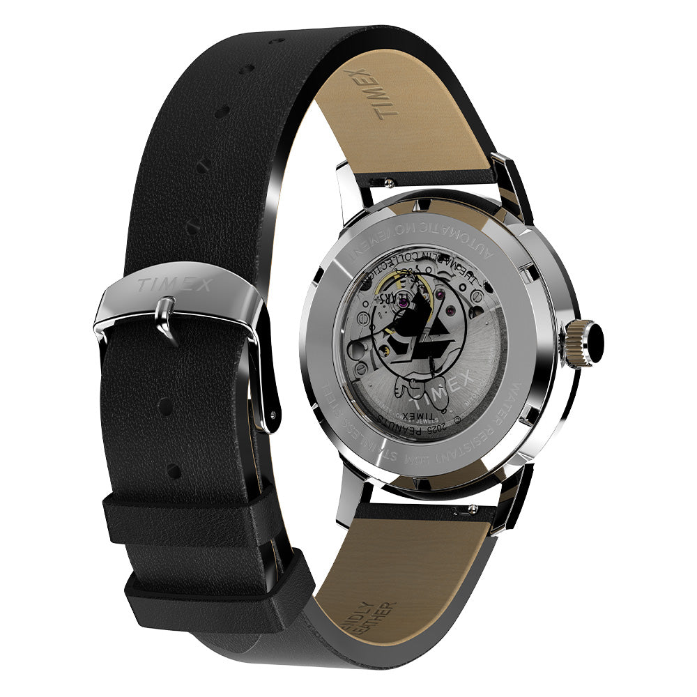Celebrate 75 years of joy with our special Timex x Peanuts® watch collection, a heartfelt tribute to the imaginative genius of Charles Schulz. Designed for Peanuts fans of all ages, this playful iteration of our Marlin Automatic captures the fun and whimsy of Snoopy on its silver sunray dial. We’ve paired its charming design with a sleek 40mm stainless-steel case, luminant hands, a customized exhibition caseback with the Peanuts 75th anniversary logo, and a smooth grain black leather strap ethically sourced from the Leather Working Group (LWG).