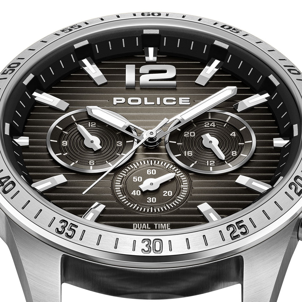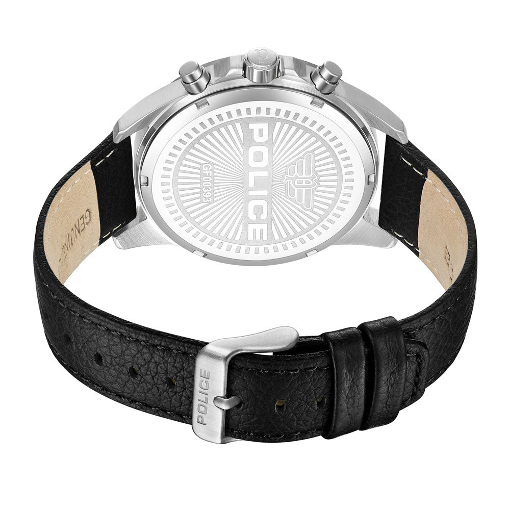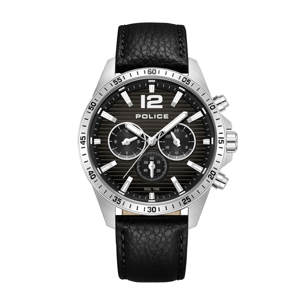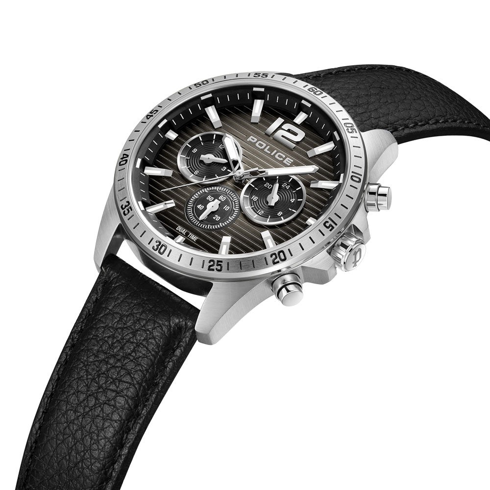Affirming a classic-urban look does not have to be boring. Introducing Police's Chester - a dual time watch with the right amount of oomph. Bringing alive simplicity and urbanness through black to grey graduation dial and comfortable black leather strap, all while staying true to the distinctive DNA of the brand, Chester exude an air of effortless cool. Well balanced with style and practicality, Chester puts a modern spin to timeless elegance.