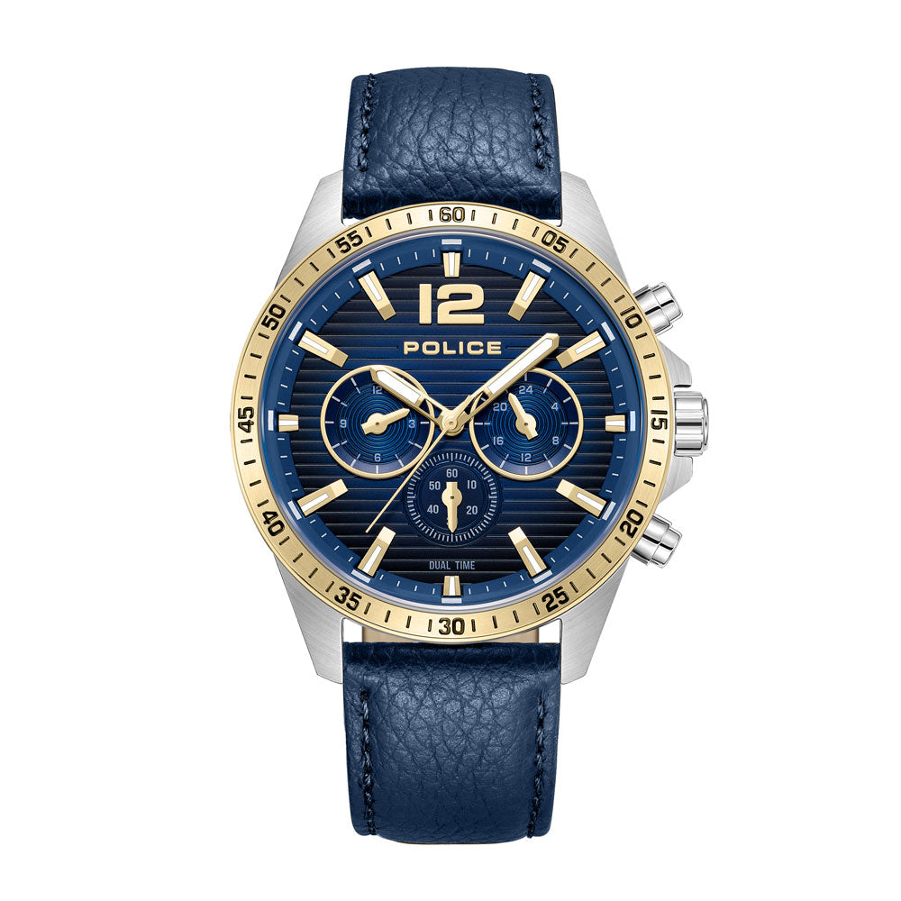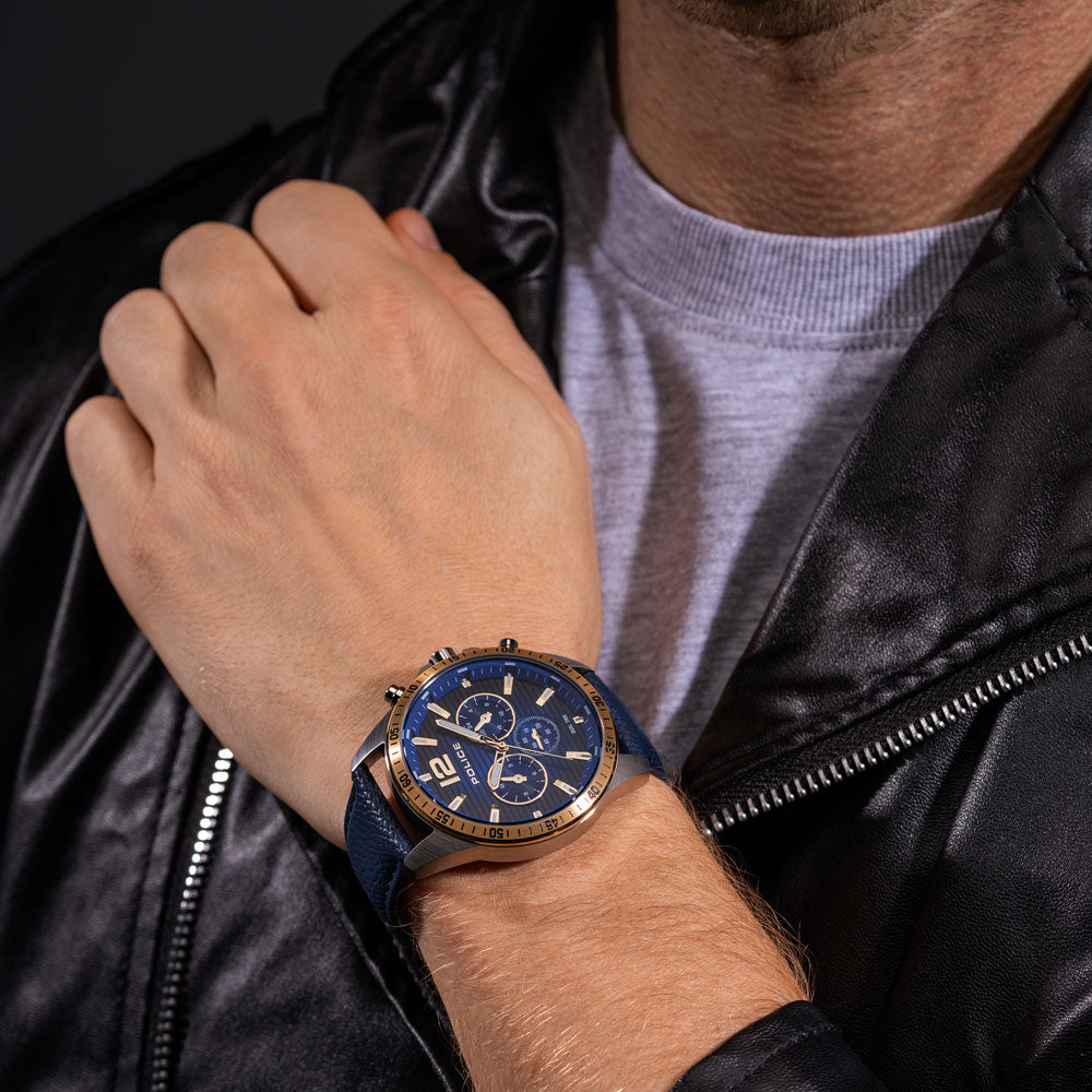 Affirming a classic-urban look does not have to be boring. Introducing Police's Chester - a dual time watch with the right amount of oomph. Bringing alive simplicity and urbanness through the cool blue dial and comfortable matching leather strap, all while staying true to the distinctive DNA of the brand, Chester exude an air of effortless cool. Well balanced with style and practicality, Chester puts a modern spin to timeless elegance.