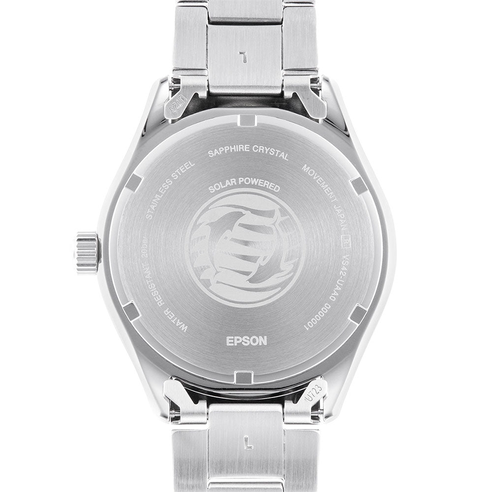 This model features a sporty diver style with a compact 39.9 mm case and simple design. Additionally, it is powered by a convenient solar-powered movement and come in colours evoking the gentle sunshine.