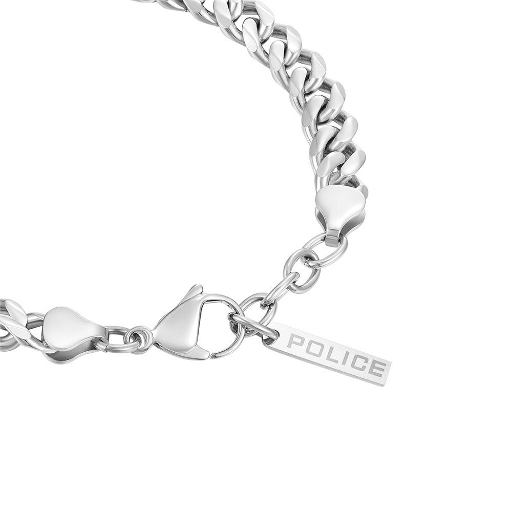 The Long-Lasting bracelet from the Police collection features bold lines -everything you need to express your style. The stainless steel shiny cuban chain adds a stunning accent to the distinctive look. The striking lobster clasp allows the bracelet to rest securely on the wrist.