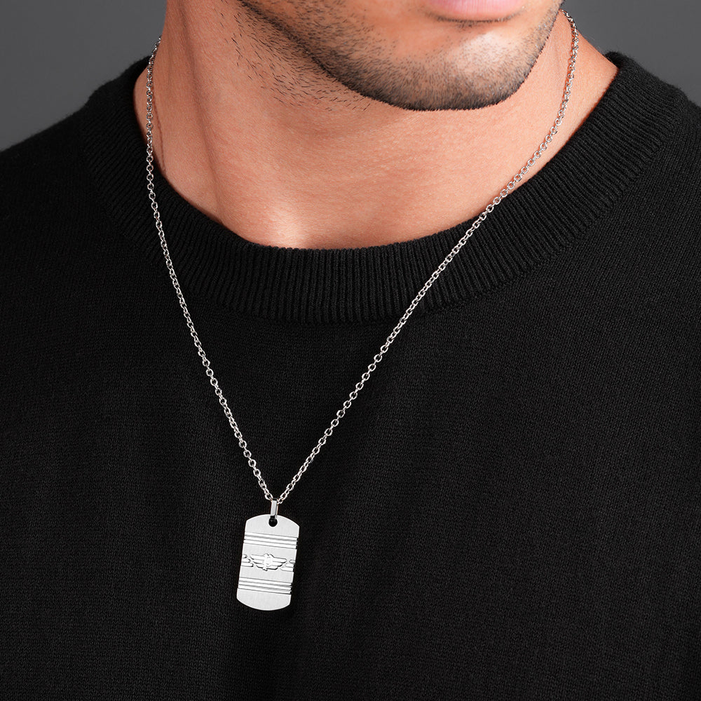 Boasting an edged up spirit, Revelry necklace is infused with Police's voice and personality. The tag pendant, dubbed with the iconic wing logo, serves as a symbol for the unwavering energy of the modern men of today.