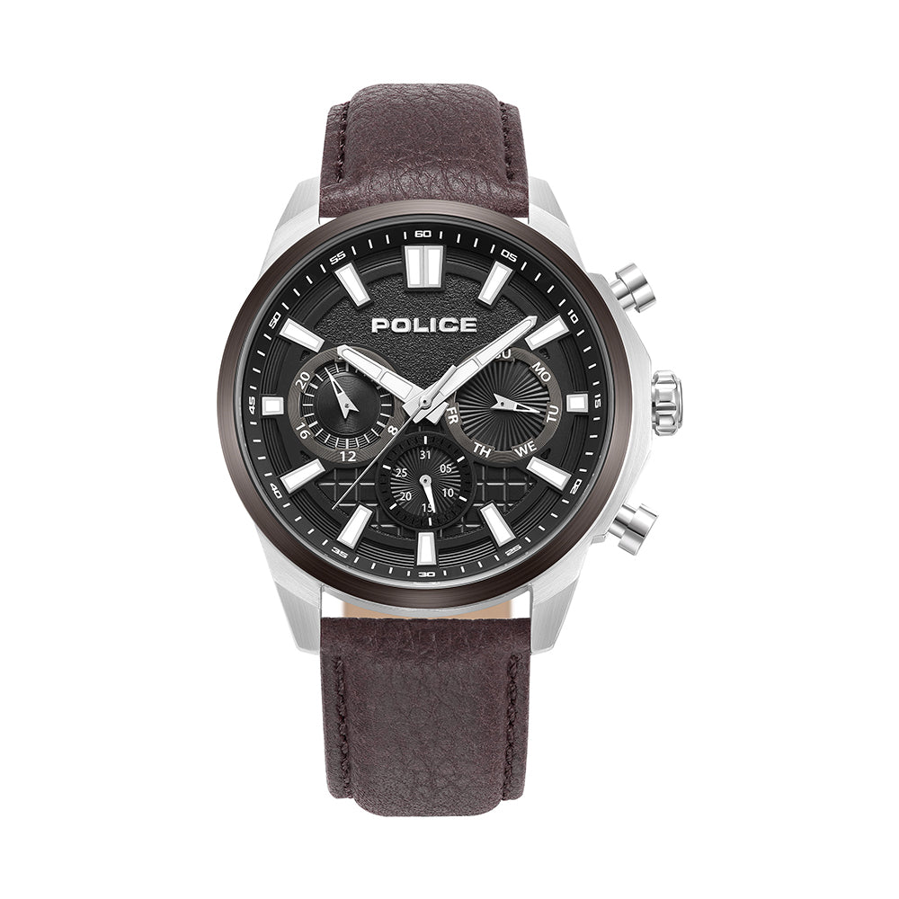 Reinforce your rebel side with the Police men's Rangy. Flawlessly sculpted in modern elements, Rangy exudes an unconventional sense of individuality. The brushed & polished case, complimented by the dark brown leather strap, sets up a tenacious vibe, while under the hood, the watch boasts a multifunction movement.