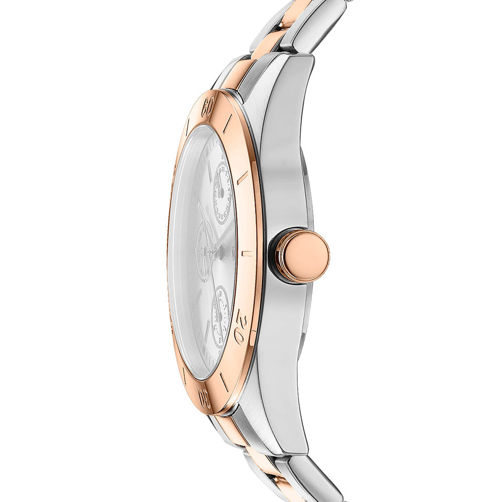 A watch that merges athletic functionality with a touch of urban sophistication. Featuring a robust 38mm stainless steel case with a two-tone finish, this timepiece embodies a perfect blend of sporty charm and refined design.