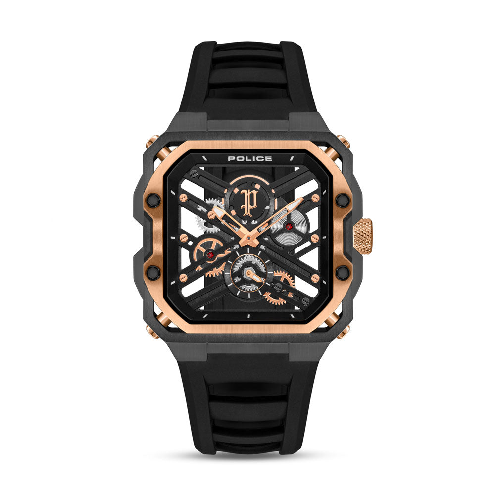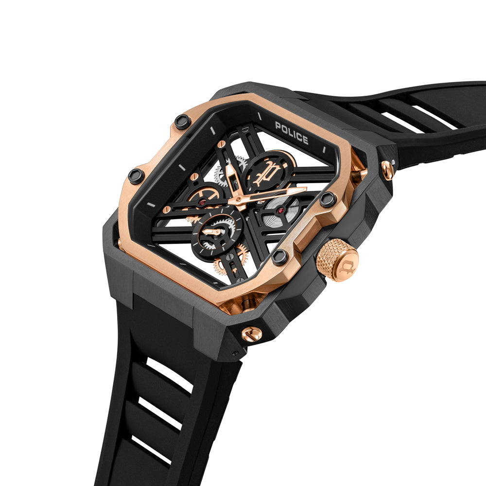 Maximalist design takes a bold new turn with the Disruptor I. The ion-plated gun case, marked by screws at each corner, flows into a partially see-through brushed dial with 2 hand movement and prominent screw details that give the watch its edgy appeal. Featuring a sleek black silicon strap with cut out detail to match the dial, this timpiece is crafted to disrupt the ordinary.