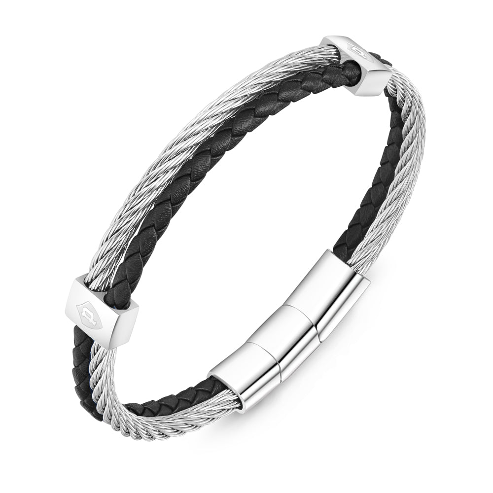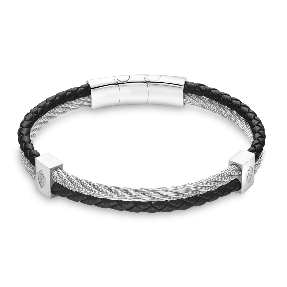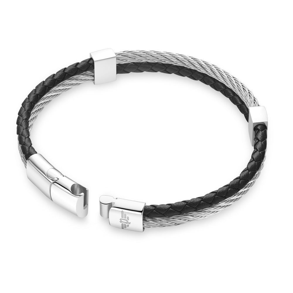 Whatever your style, Police men's Kingpins is a knockout bracelet that will take the wearer's personality. The bold details make this shiny stainless steel mixed cable paired with the black leather bracelet bold, sophisticated and a statement piece.