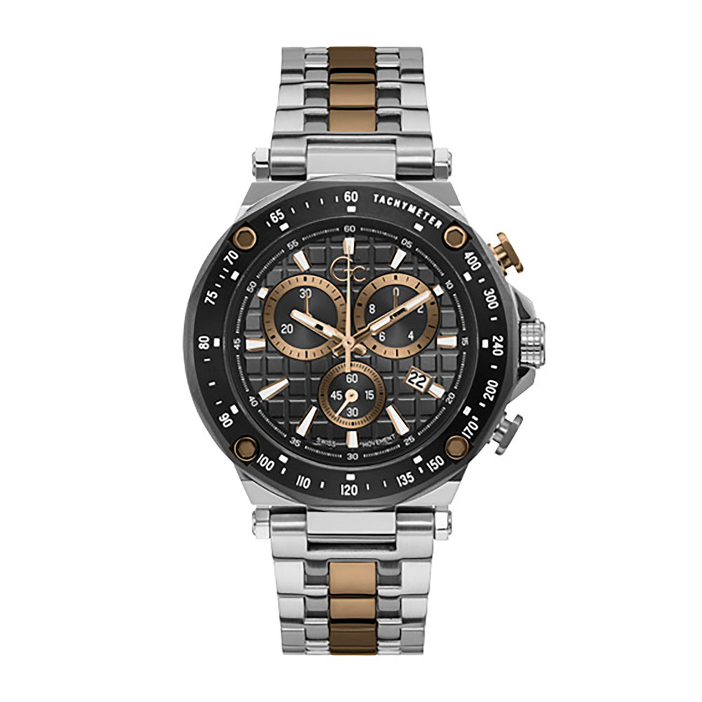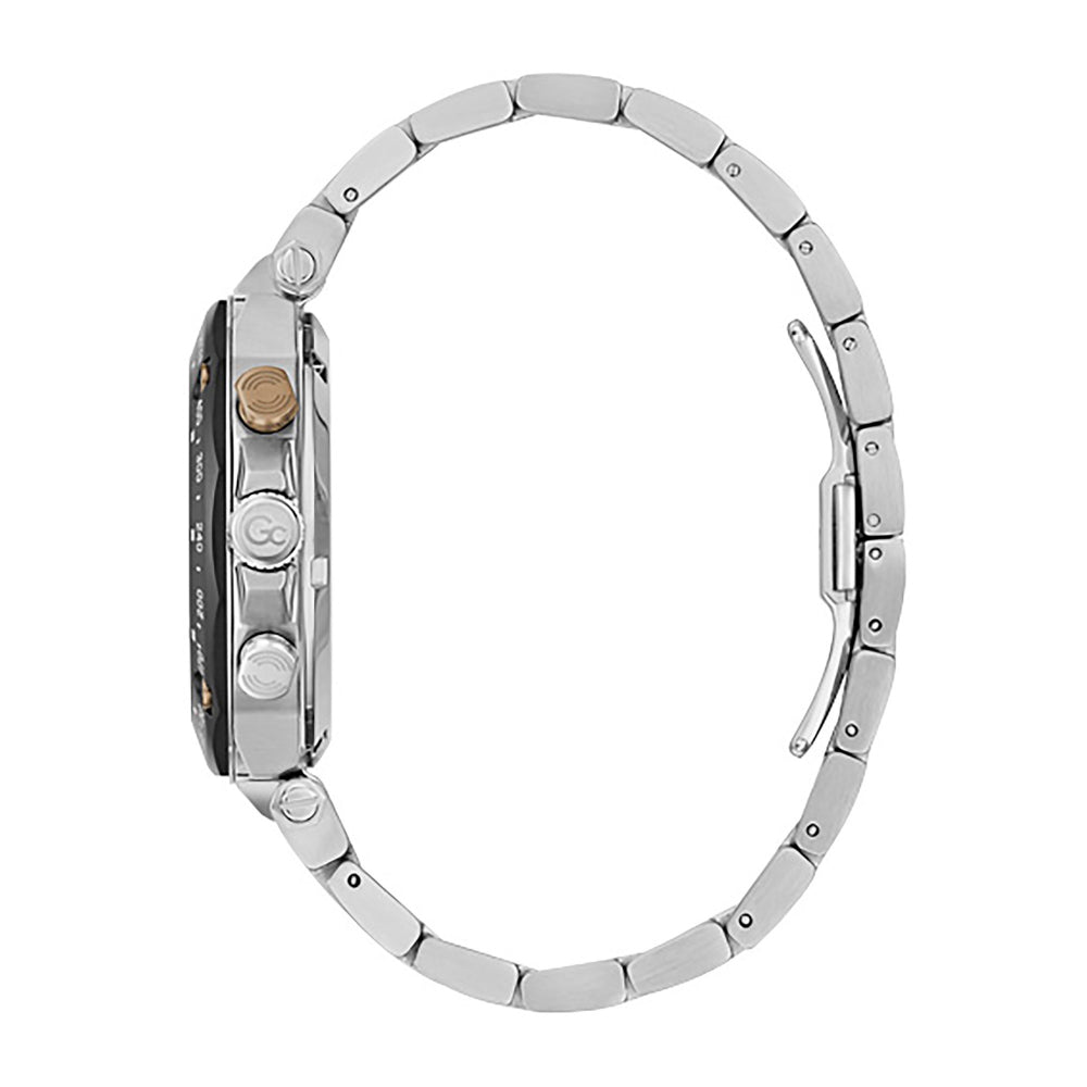 This Sport Chic men's steel GC watch will not leave you indifferent. With a sporty dynamic design, it has a black graduated dial and three mini-dials, as well as adjustment buttons on its side. All steel, it will surely sublimate your wrist.