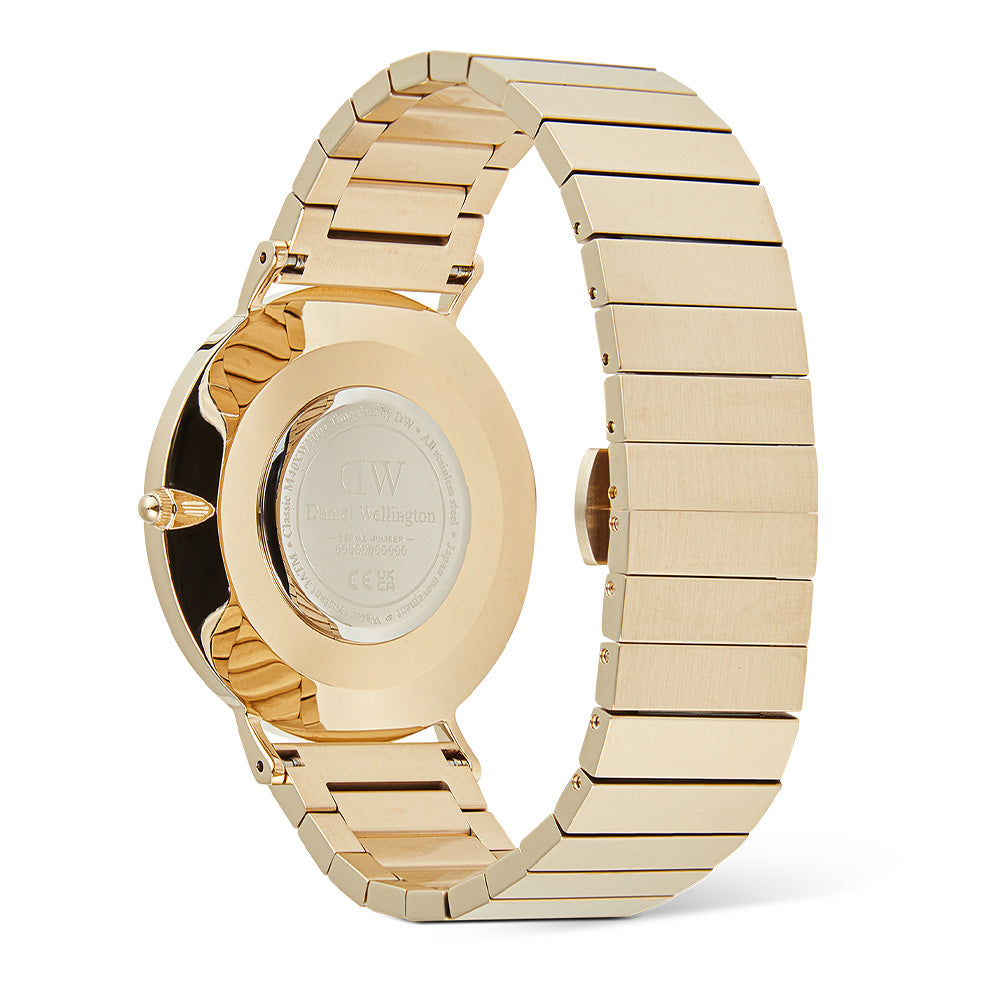 An extension of our best-selling Classic collection, but with a head-turning look of its own. This version features a brushed gold dial and our brand-new piano link strap, which is interchangeable for added versatility. That combination of brushed metal and sleek, geometric lines gives a more exclusive aesthetic for a true statement piece.