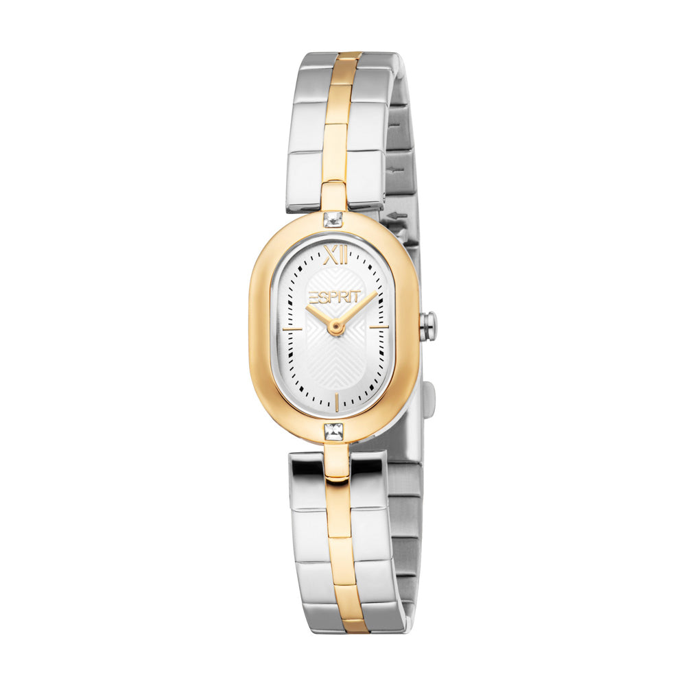 A perfect mix of silver and gold, this Esprit watch features a clean white oval dial and a polished two-tone bracelet, making it a standout accessory for any occasion.