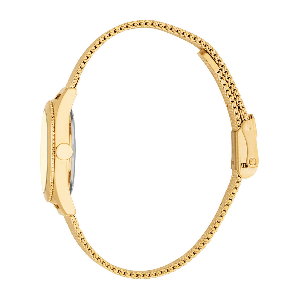 Designed for the modern minimalist, this gold watch offers a seamless blend of classic design and contemporary flair. The gleaming mesh band and golden dial create a chic and versatile accessory that elevates any outfit.