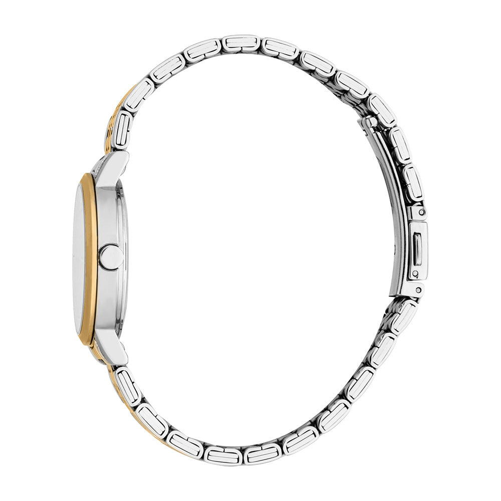 Adorned with a luminous Mother of Pearl Dial in a captivating Two-Tone Gold and Silver Strap ? a fusion of elegance and versatility. The iridescence of the Mother of Pearl dial harmonizes seamlessly with the dynamic interplay of gold and silver tones on the strap, creating a coordinated ensemble that captivates with every glance.