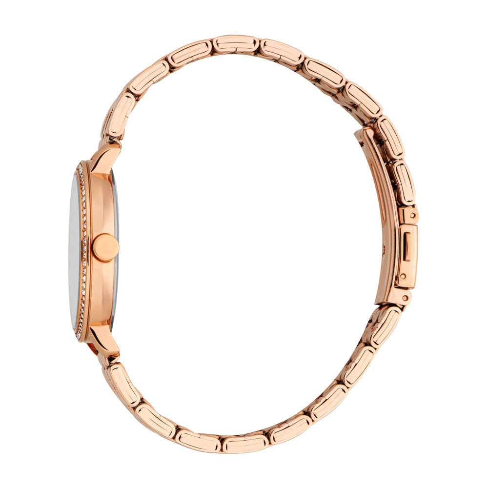 A symphony of timeless grace and modern allure. The radiant silver dial, a beacon of classic elegance, elegantly contrasts with the warm embrace of the rose gold strap. Elevate your style with this chic accessory, a perfect harmony of sophistication and contemporary charm for every moment.