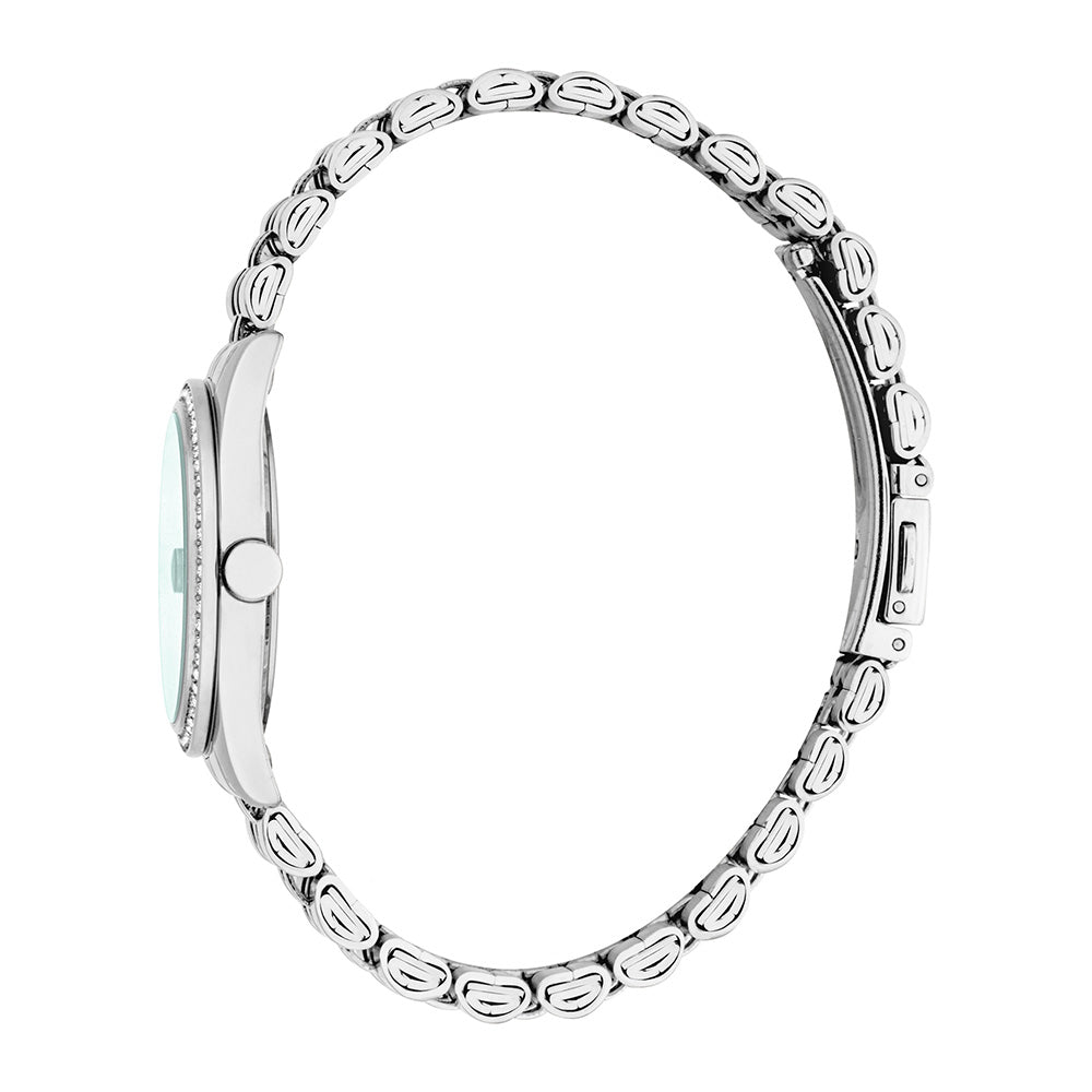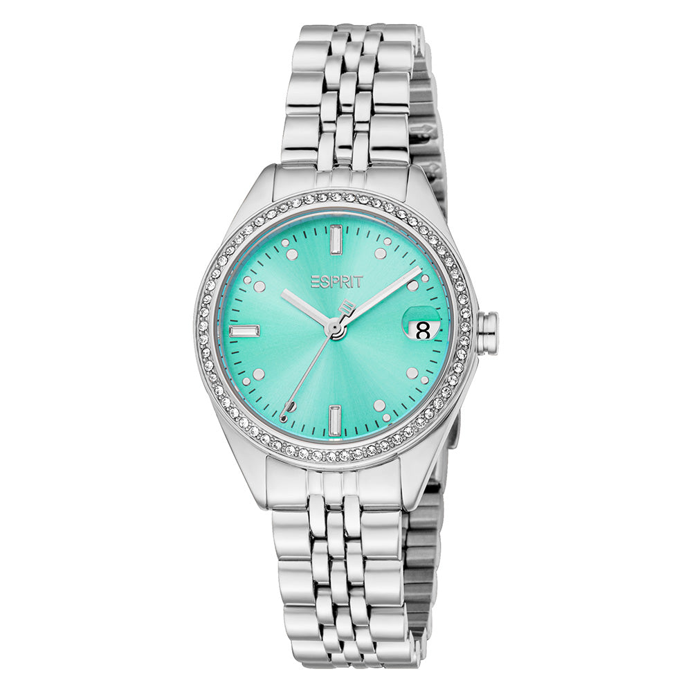 This silver timepiece with a serene turquoise dial captures the essence of calm seas, perfect for adding a fresh vibe to your wrist.