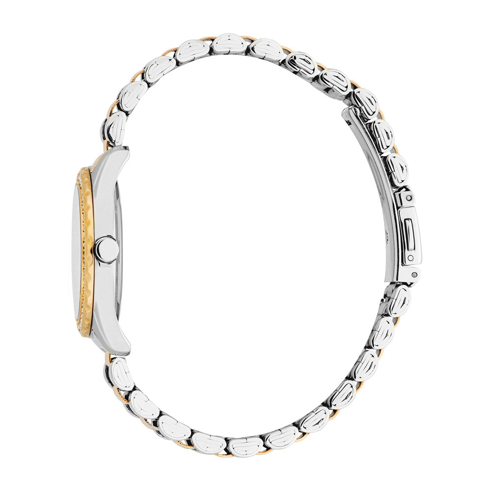 The silver dial, intricately designed for timeless appeal, is encased in a harmonious dance of gold and silver tones on the strap. This timepiece effortlessly transitions from casual to formal, making it the perfect accessory to accompany you through any occasion with a touch of refined elegance.
