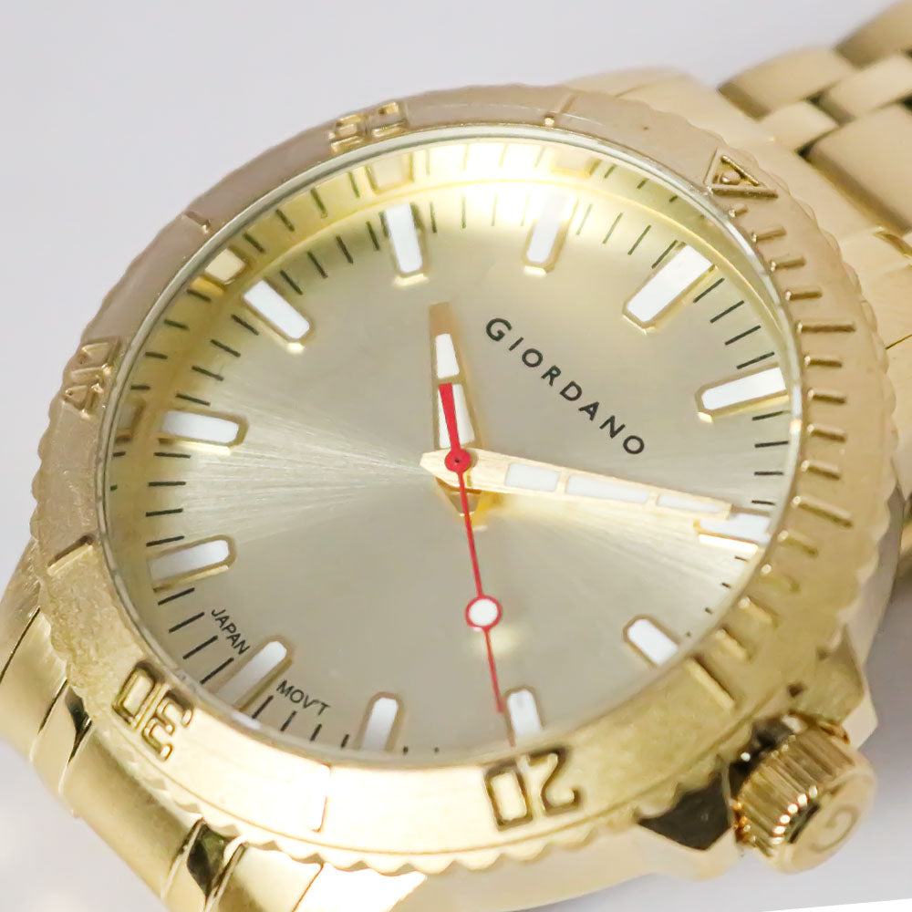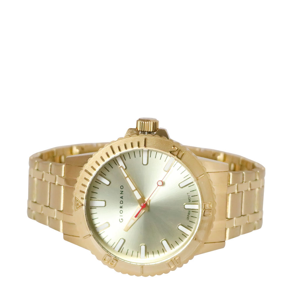Indulge in the everlasting sophistication of our pure gold timepiece. Experience the epitome of sophistication and elegance with our fashion line, tailored to suit the contemporary man. Introducing the all-new Giordano watch, designed to be every man's top pick with its impressive 44mm case size.