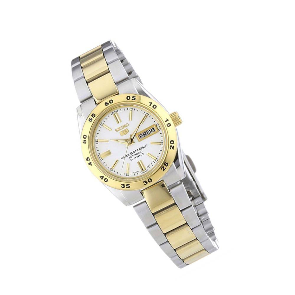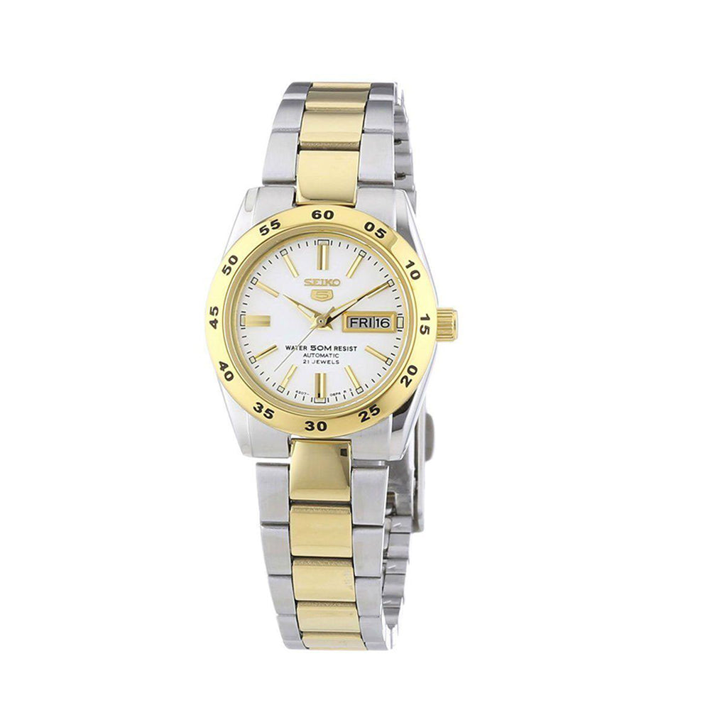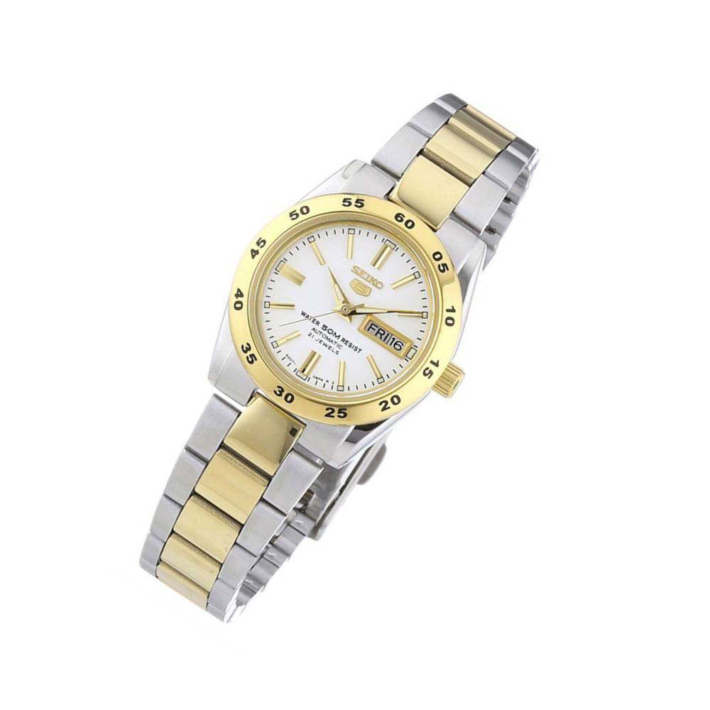 Perfect for almost any occasion, the Seiko women’s automatic watch SYMG42K1 is a dependable essential. Crafted from solid stainless steel, it combines a timeless aesthetic with lasting durability. Protected by sturdy mineral glass, the white dial houses the precise 4208 calibre automatic movement, offering an elegant analogue display. The round, multi-tone stainless steel case ensures long-lasting performance, while its 5-bar water resistance keeps it safe from everyday splashes. The multi-coloured stainless steel bracelet, secured with a safety folding clasp, provides both comfort and a secure fit.