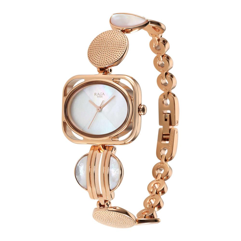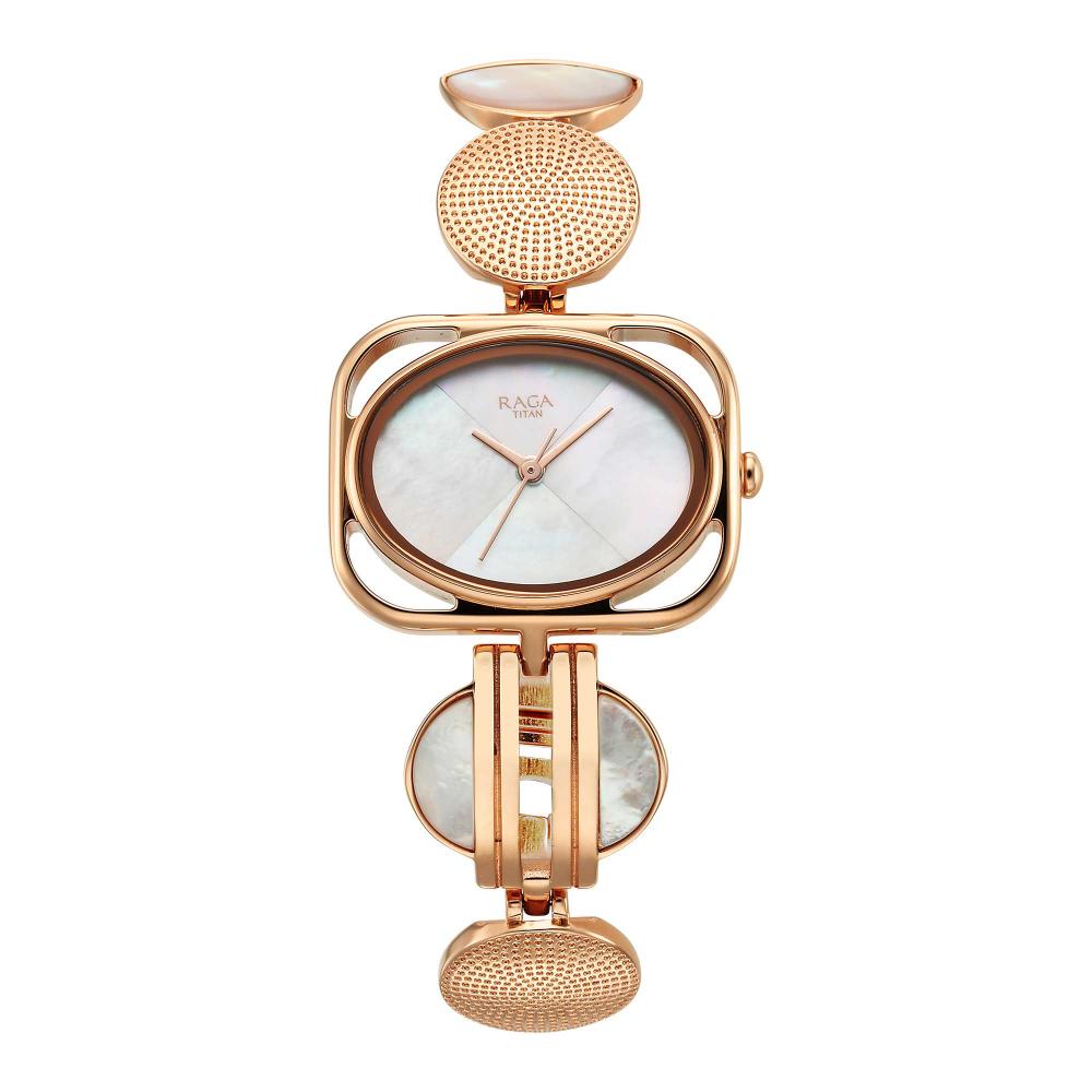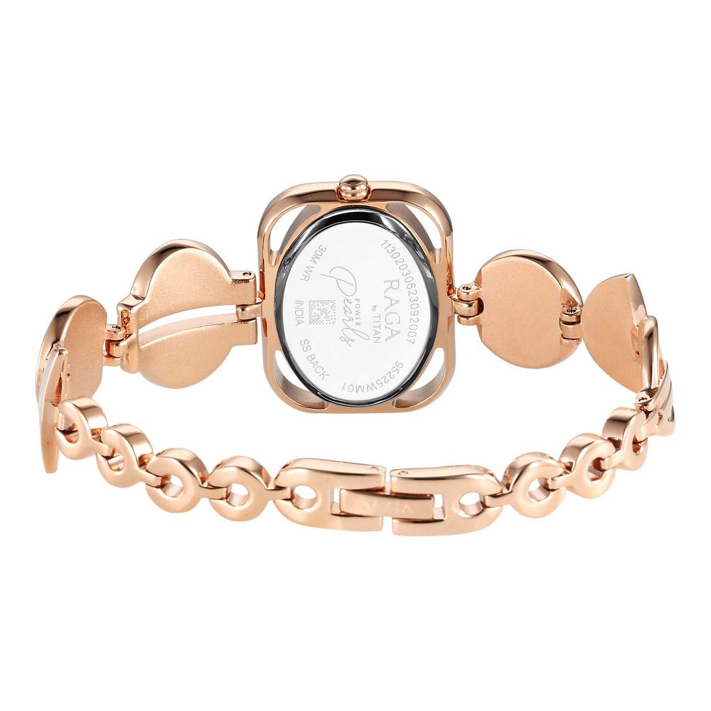 Titan Raga Power Pearls Quartz Analog Mother Of Pearl Dial Watch for Women With Rose Gold Colour Metal Strap