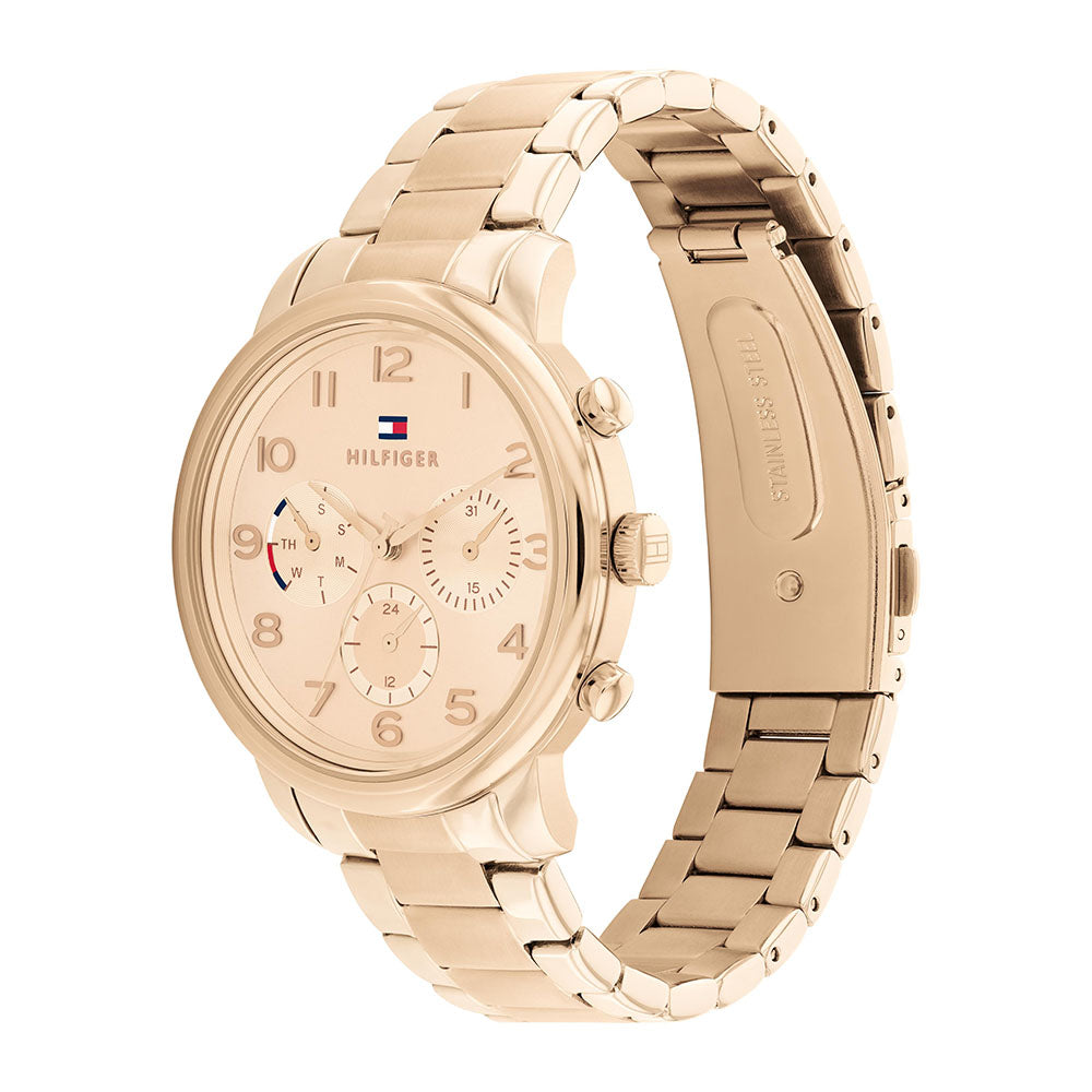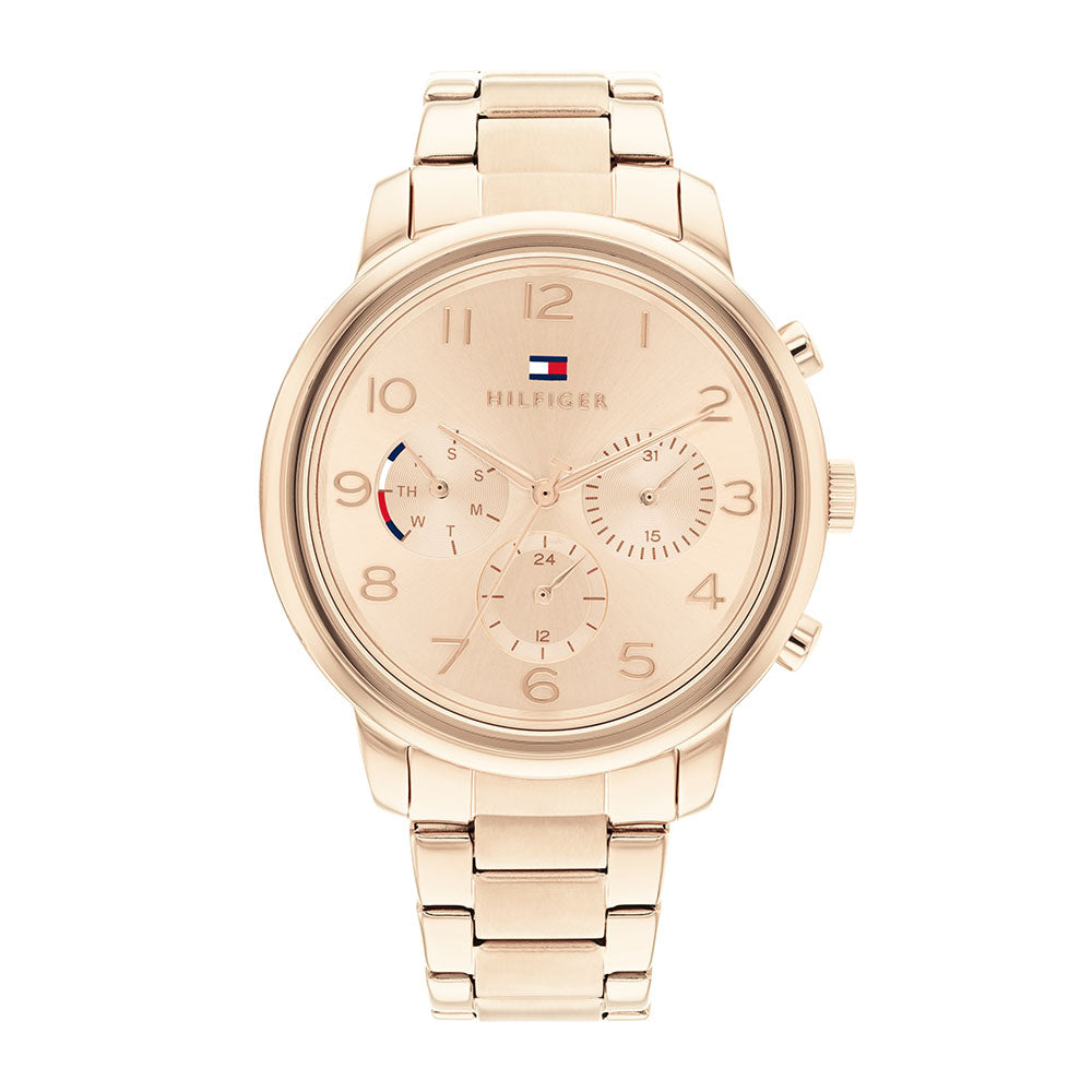 Tommy Woman?s watch, Iconic yet casual and versatile, with a touch of fun. Sunray dial with Arabic numerals and cut texture details. Branded details throughout make this a Tommy go-to.