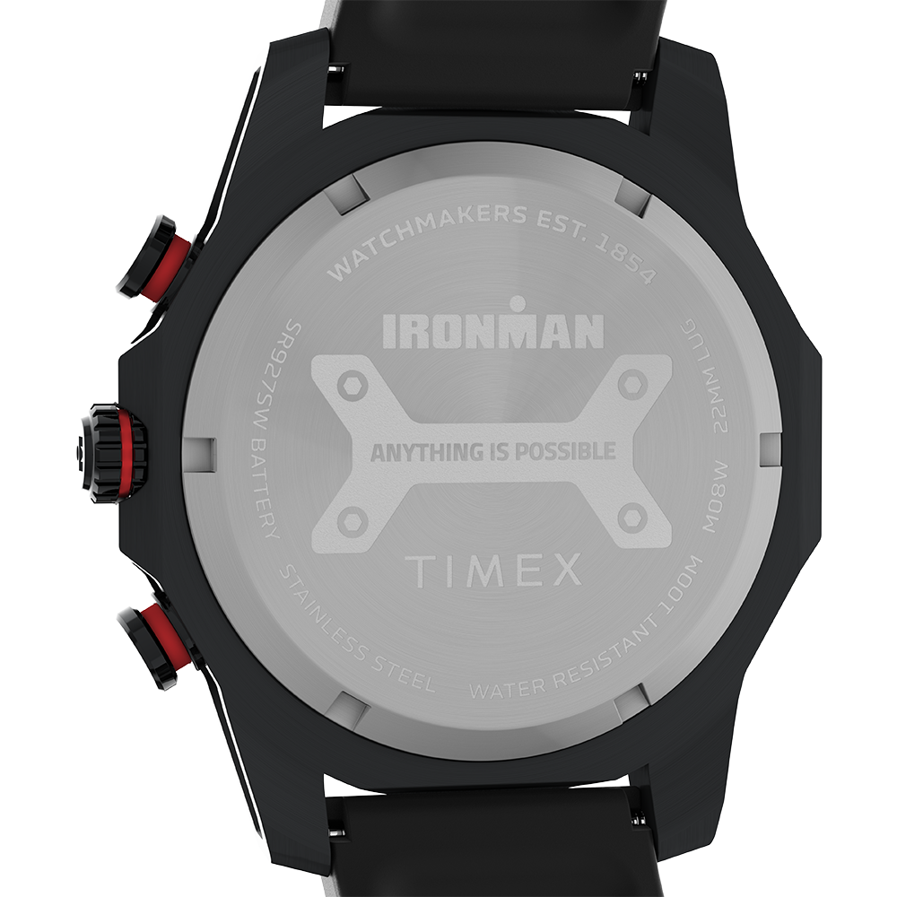 With its substantial 48mm stainless-steel case and cut-out detailing on its lugs, our TIMEX IRONMAN® Adrenaline Chronograph brings bold style to our TIMEX IRONMAN® line. It’s built with a chronograph movement for measuring elapsed time and recessed sub-dials that bring dimension to the dial. A date window between the 4 and 5-o'clock markers furthers the dial’s intricacy, while the iconic TIMEX IRONMAN® logo appears on the dial, crown, and embossed rubber strap. Luminescent hands make it easy to tell time even in low-light conditions, while 100m of water resistance ensures that this watch can handle any weather.