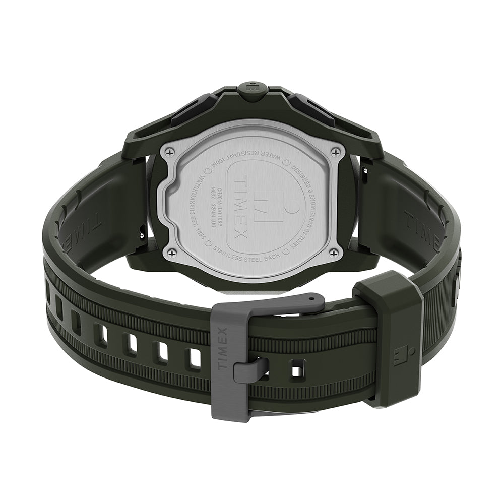 Our Ironman Adrenaline is a watch dreamed up and created by athletes, with your goals in mind. We packed tons of functionality into a sleek design, with a stainless-steel bezel, embossed strap, 50-lap data storage, and a host of other features you?ve come to expect from TIMEX® IRONMAN® ? our classic INDIGLO® backlight, a countdown timer, daily alarm, 50m of water resistance, and the ability to track a second time zone. This watch delivers what you need? and never stops delivering.
