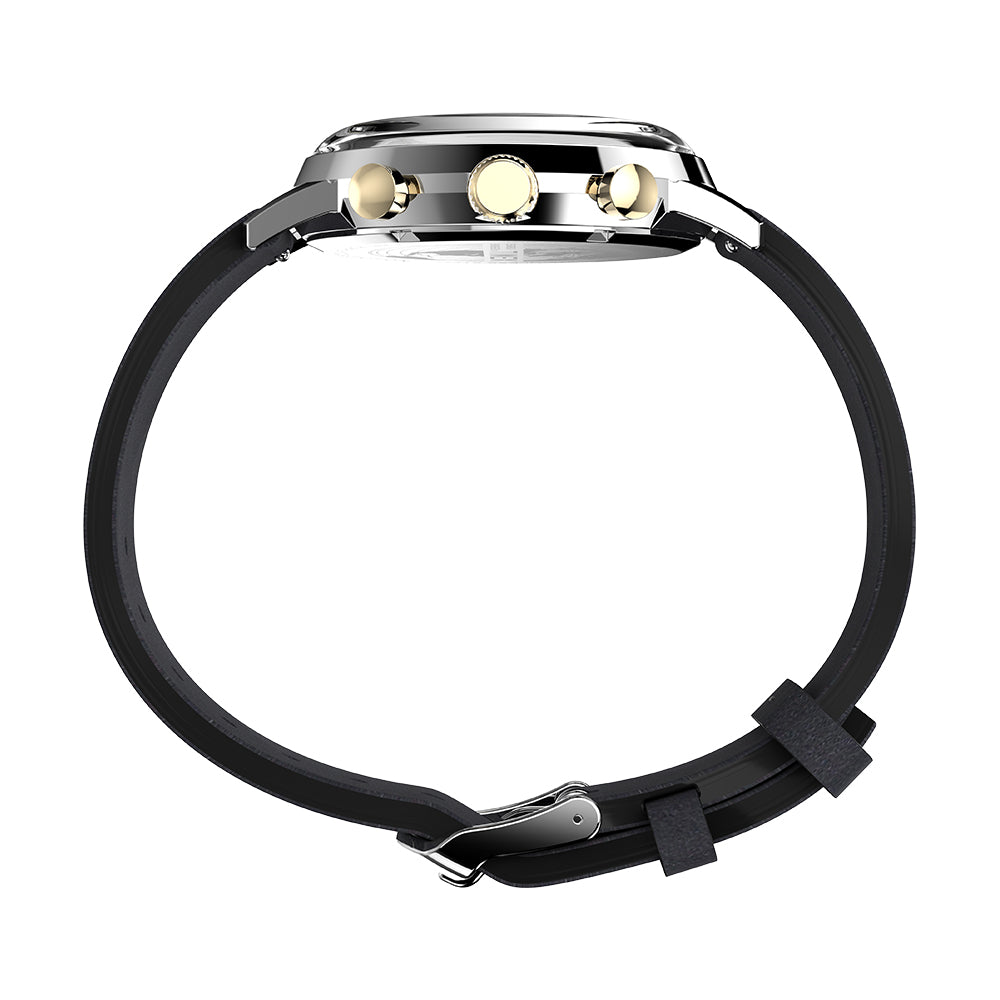 Our Marlin® Chronograph Tachymeter boasts the distinction of being the first chronograph in our Marlin line, as well as the first Marlin powered by a quartz movement. This beautifully detailed rendition features a tachymeter index along its outer minute track to measure speed and distance, as well as a unique date window placement. We’ve paired it with a supple black natural leather strap, sourced from the Leather Working Group® (LWG) and complete with quick-release spring bars. Though its build breaks new ground in our watchmaking heritage, this timepiece retains the classic Marlin features with a sturdy 40mm stainless-steel case, domed acrylic crystal lens, and retro-style applied indices at 3, 9, and 12 o'clock.
