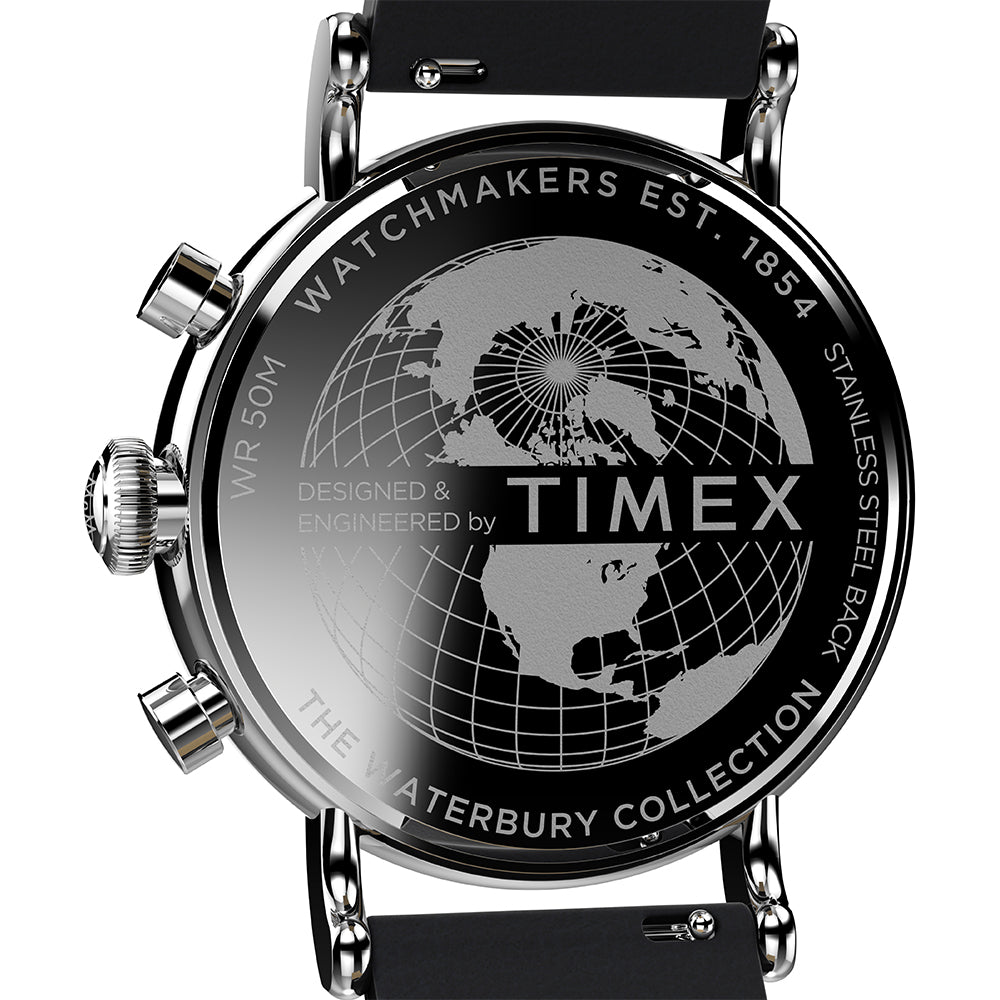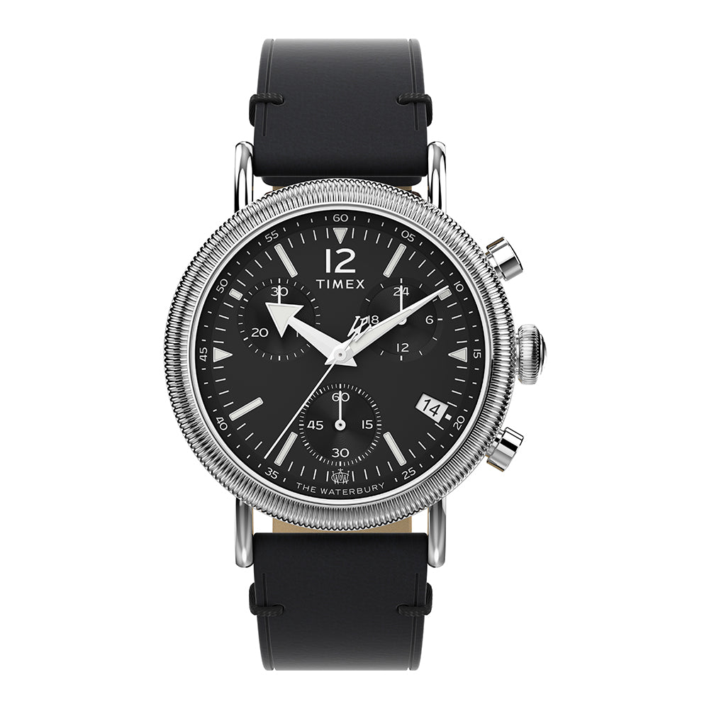 Our Waterbury Standard Coin Edge exhibits our signature attention to detail with finely finished surfaces and careful applications of watchmaking ingenuity. We took pieces from our archives and modernized them while staying true to our classic roots with authentic Timex elements like heavier hands and bold Arabic numerals. This remarkable timepiece harbors a portfolio of unexpected details including a traditional coin edge around its bezel, a sizeable onion crown, and the stylized W of the Waterbury Watch Company gracing its dial, crown, and 2nd hand sweep. Designed to ignite a sense of nostalgia and pride, it serves as a reminder to never stop dreaming.