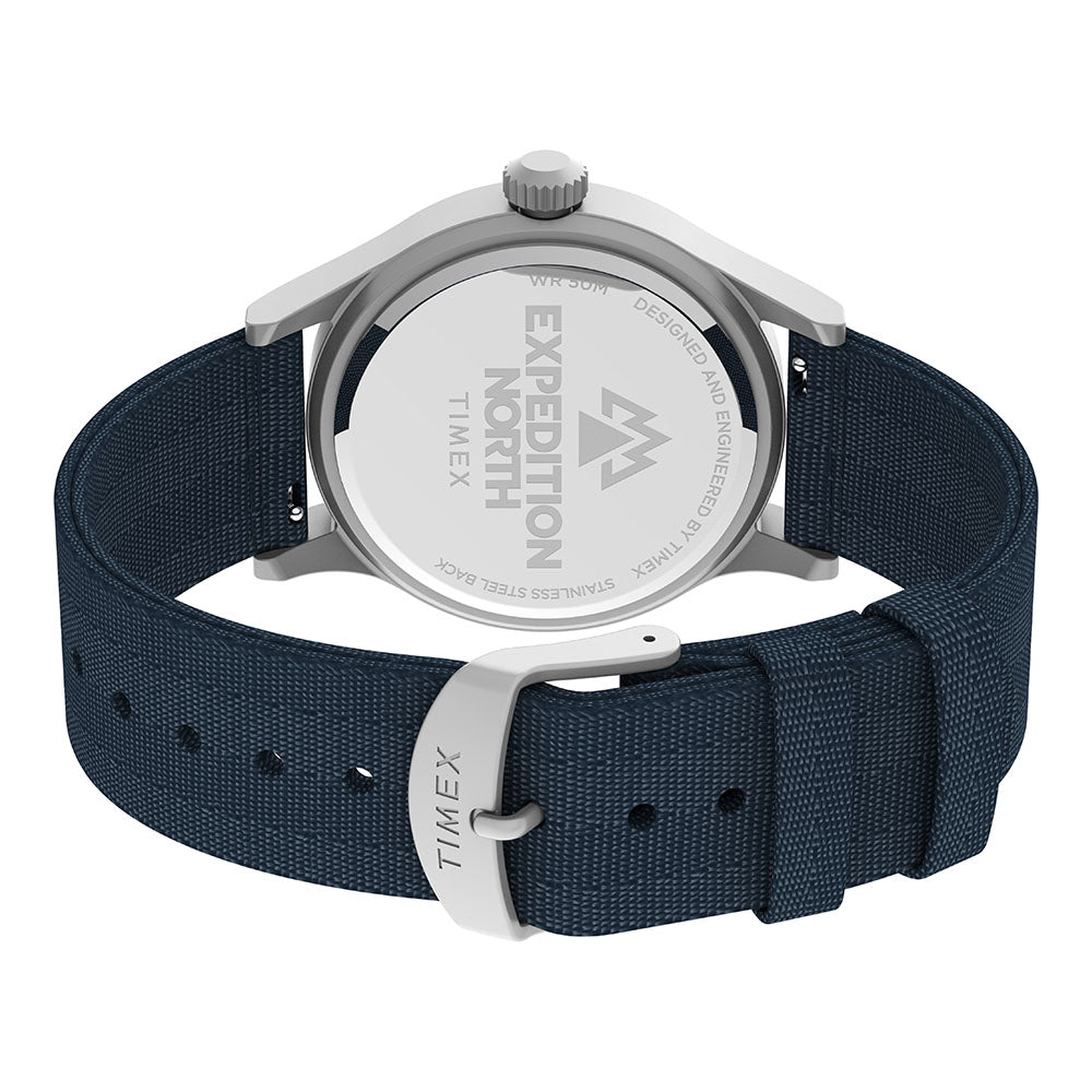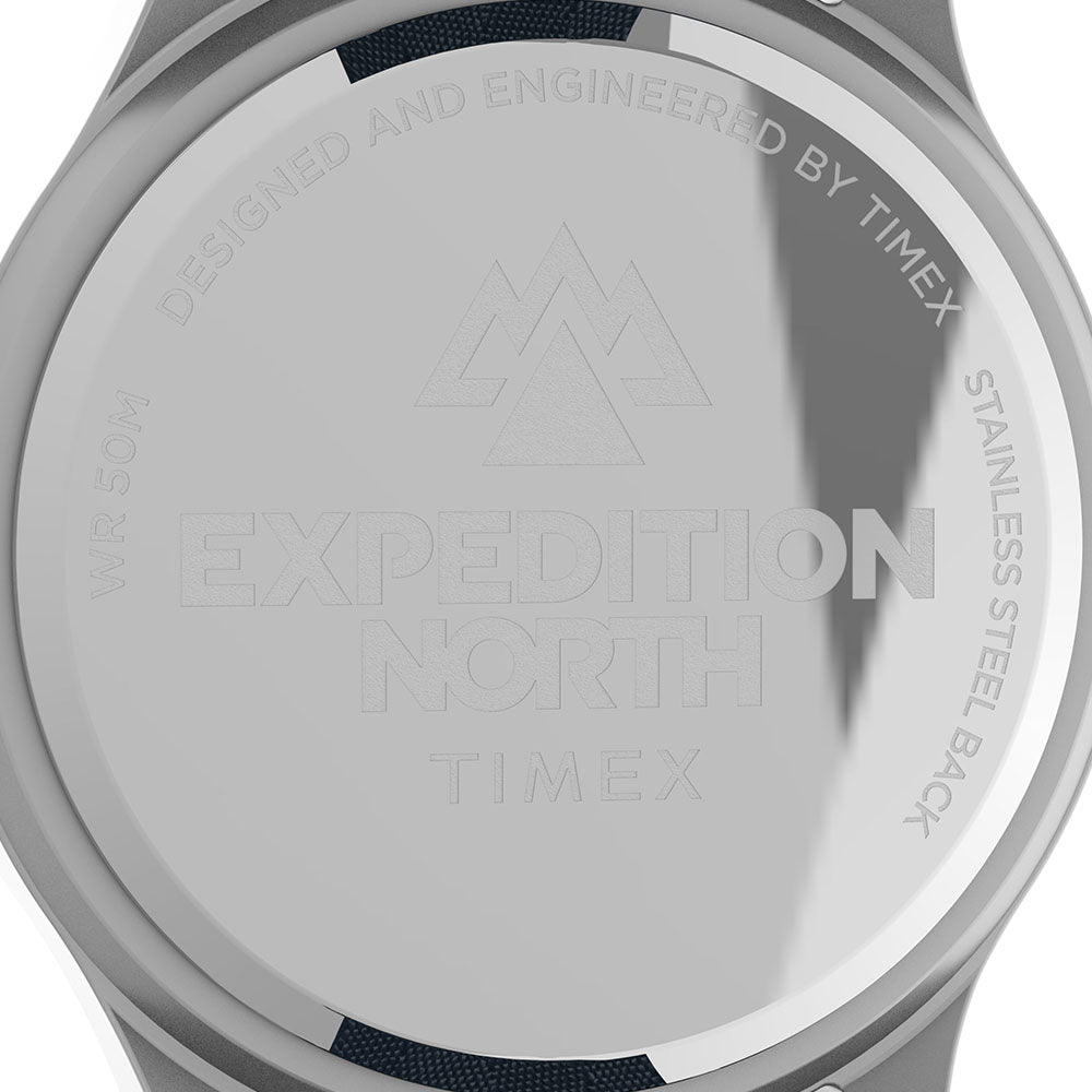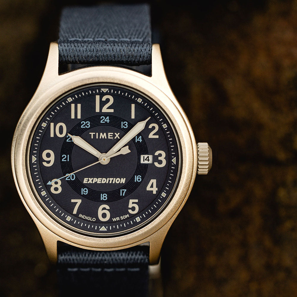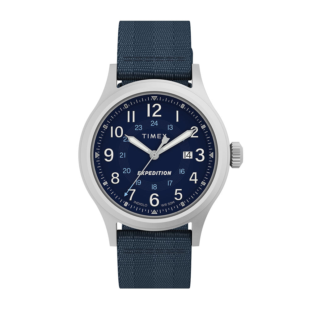Our Expedition® watches have been an outdoor-adventure mainstay for years now, and this update brings fresh appeal to a trail-ready classic. Featuring our much-loved INDIGLO® backlight and luminescent hands on the detailed, military-inspired dial, it's as easy to read at midnight as it is at high noon. This sturdy watch is water resistant to 50 meters with a comfortable two-piece fabric strap crafted from 100% recycled post-consumer plastic, which we've indicated with a leaf mark on the strap's underside. Take it with you on your next adventure rain or shine, mountain or valley, and everything else in between. ??