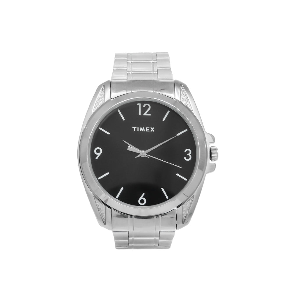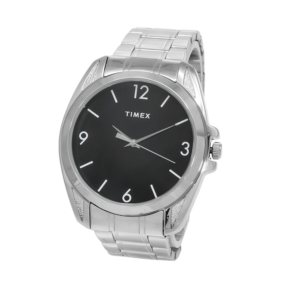 Make a statement with this 45mm silver-tone timepiece, showcasing a sleek black dial and three-hand functionality, perfect for both casual and formal occasions.