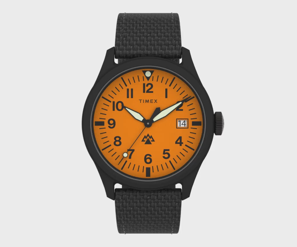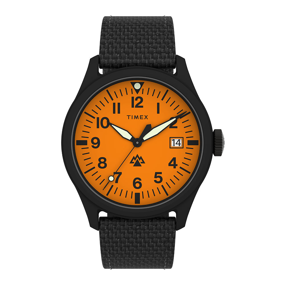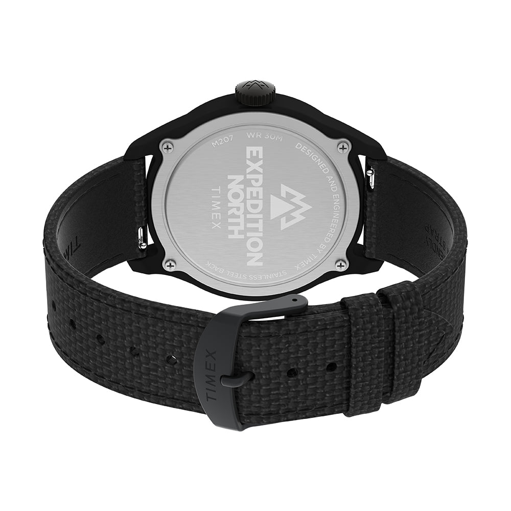 Easy to wear and planet-friendly, our Expedition North® Traprock is for those who love venturing outdoors but want to minimize their carbon footprint. It?s built with durable yet eco-friendly materials like a tapered fabric strap made from 100% post-consumer recycled plastic and lined with vegan apple leather, and a sturdy eco-ceramic case made from a special blend of ceramic and bio-based resin derived from castor plants. The clean-cut dial appears in earthy and energizing colorways that complement any ?fit, and luminescent hands provide night visibility if you find yourself still exploring after dark. So, open your map (or your app), pick a trail, and get out there.